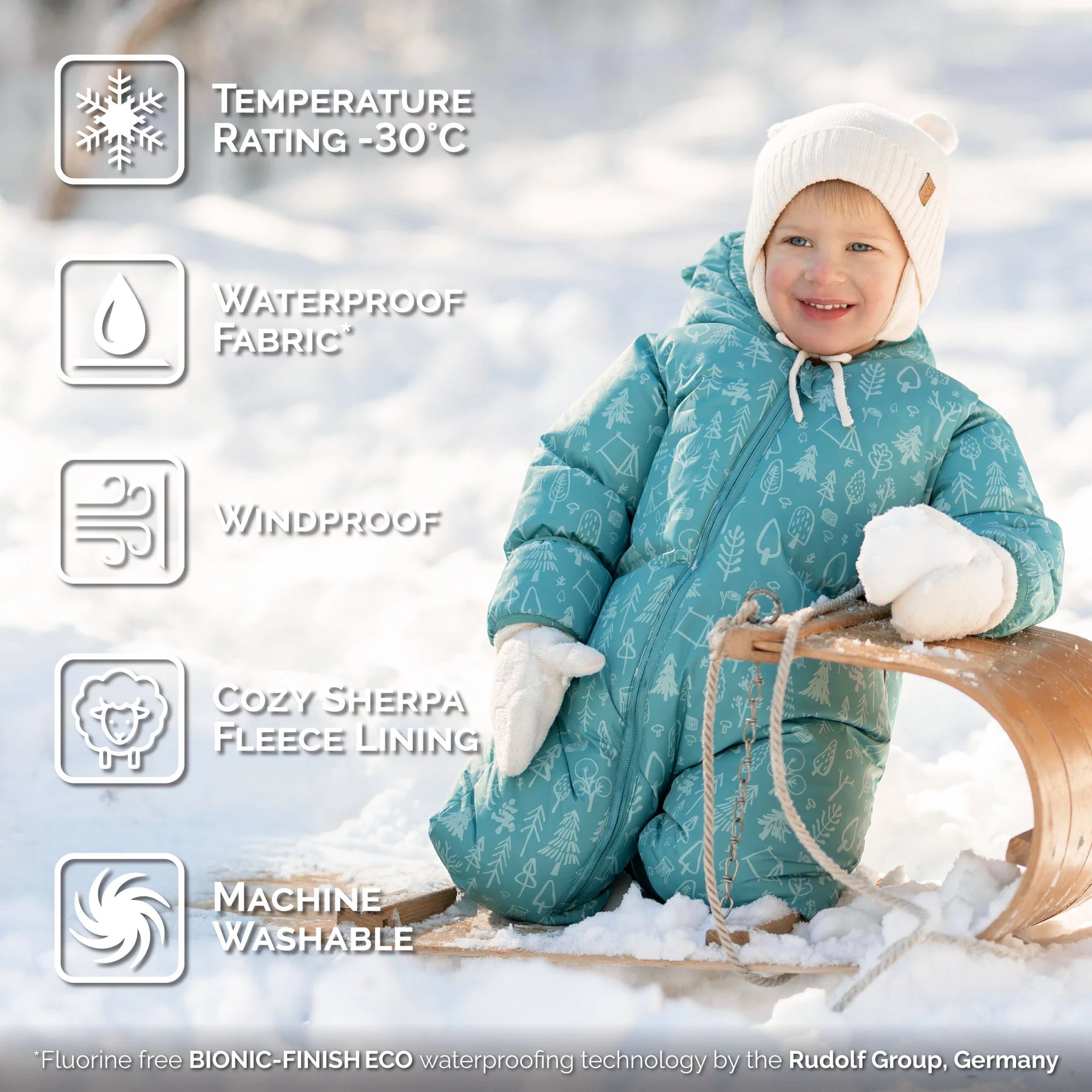 • Insulated for Warmth: 220g/sq. m of vegan insulation and a plush sherpa fleece lining keep your baby toasty warm, even in temperatures as low as -30°C/-22°F.