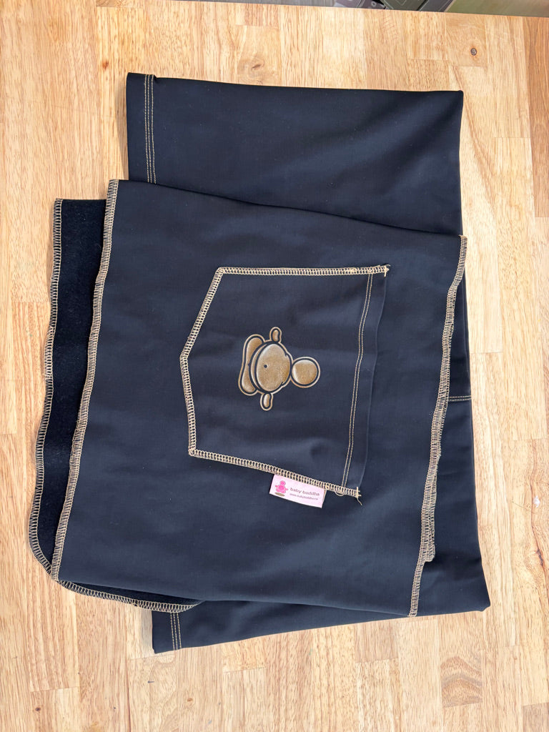 Baby Buddha two-piece stretch wrap in black. Locally made in Vancouver. Good used condition.