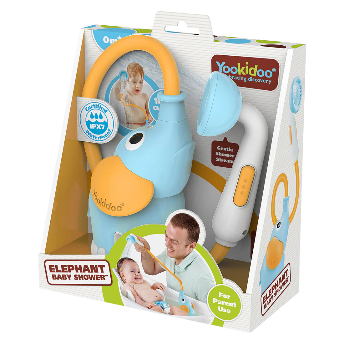 With your feet in the water and batteries in place, place the portable elephant, complete with water pump, anywhere, in any bathtub, and start celebrating bath time.
