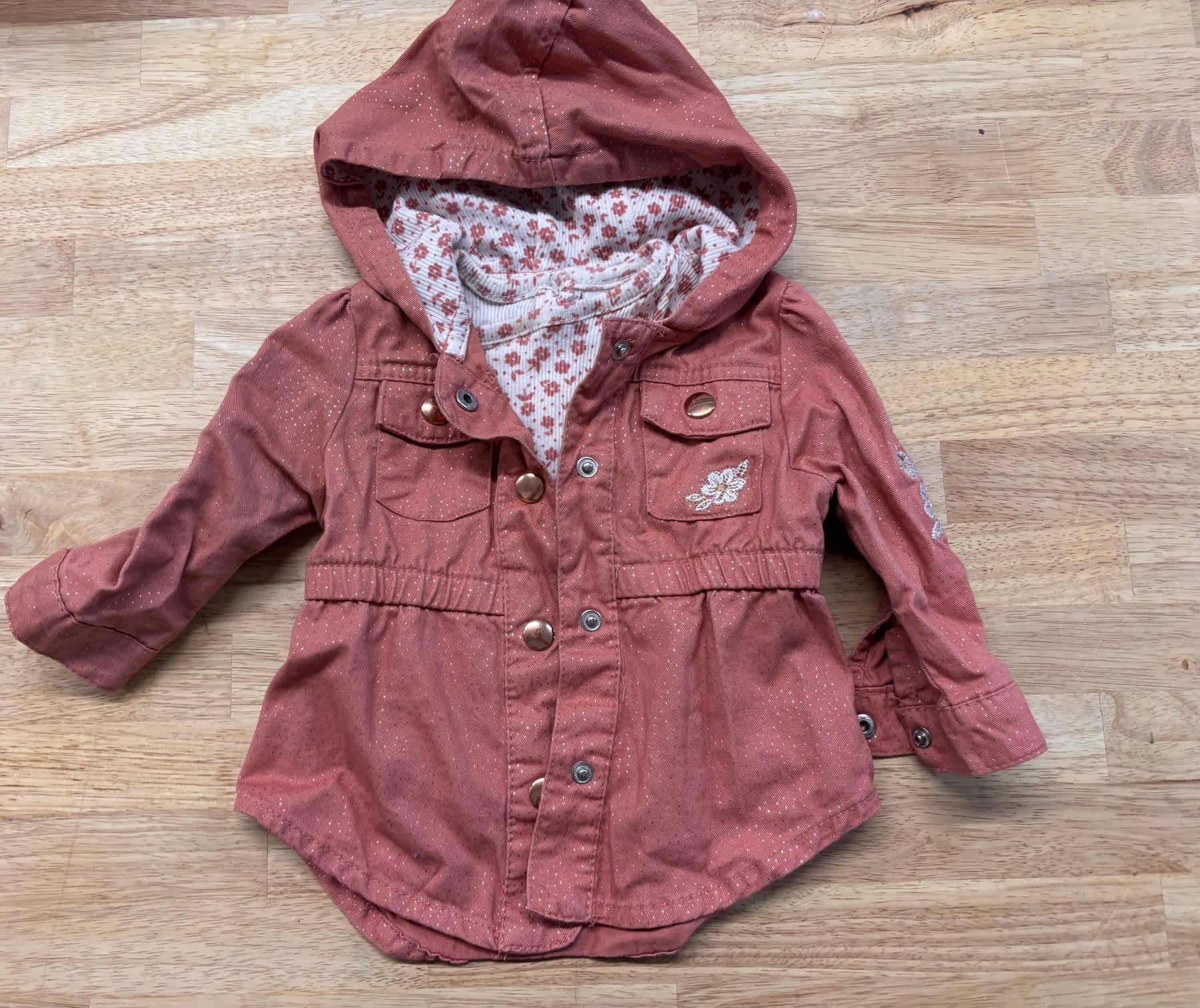 Peach jacket with floral and gold sparkle details; includes coordinating top. Good used condition.