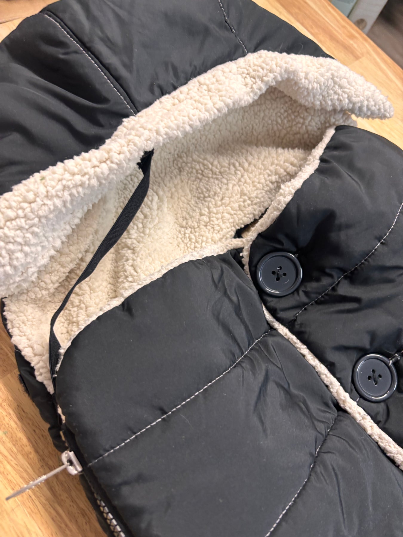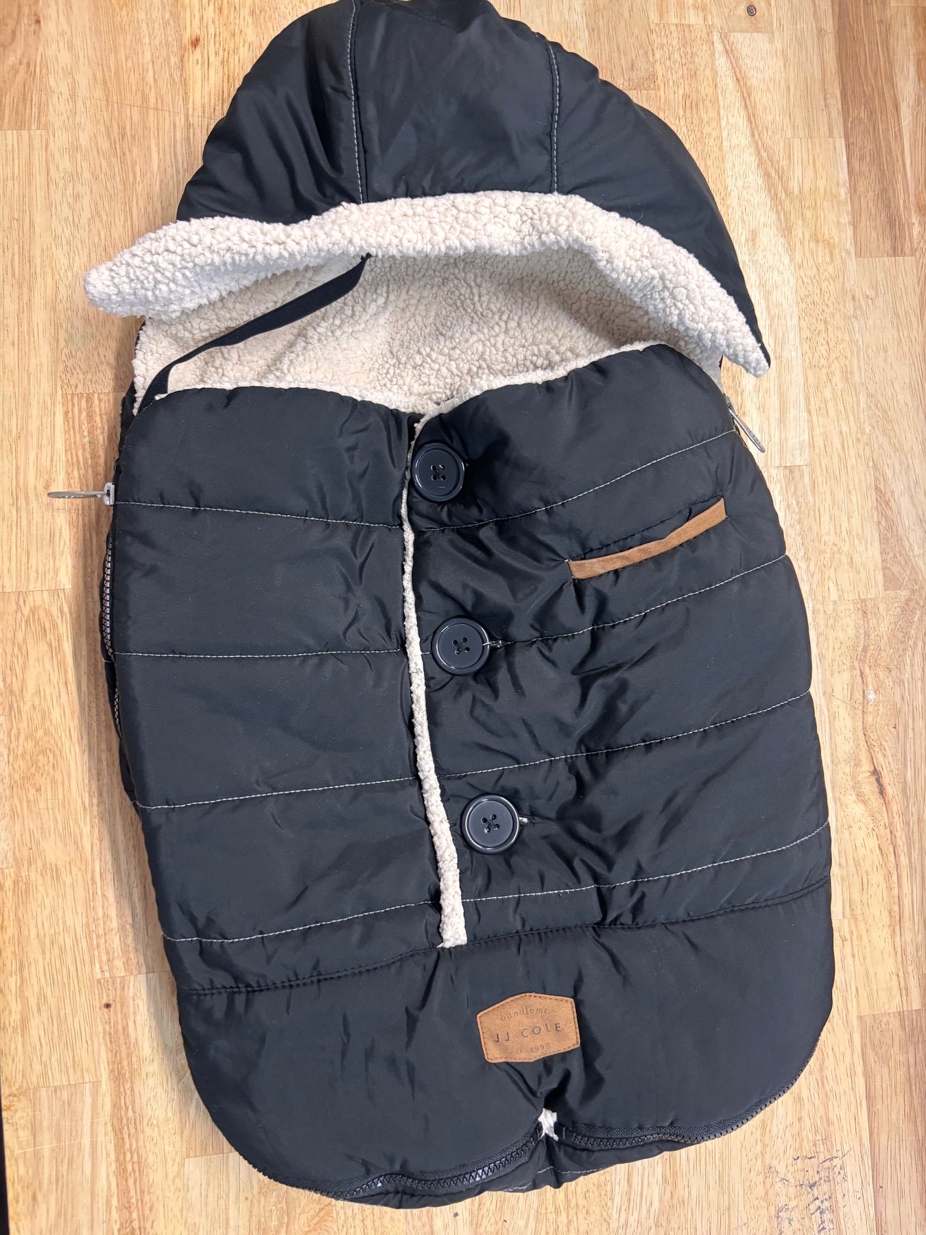 Black fleece-lined stroller bag with hood. Good used condition. JJ Cole Urban Bundleme Infant Car Seat Cover