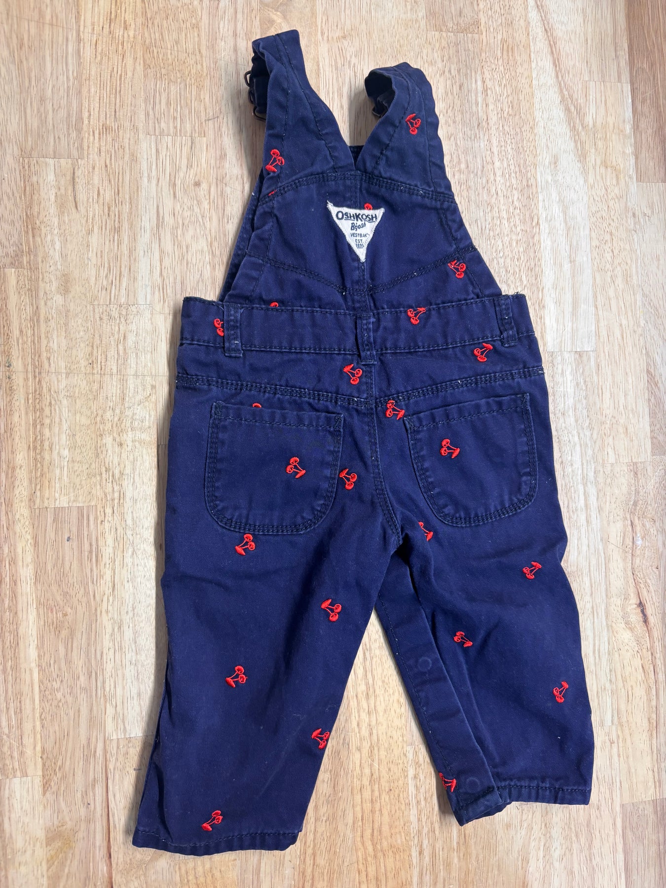 OshKosh Denim Overalls with Cherry Embroidery – Size 9M
