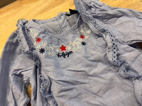 Fine blue plaid dress with embroidered star detail. Good used condition.