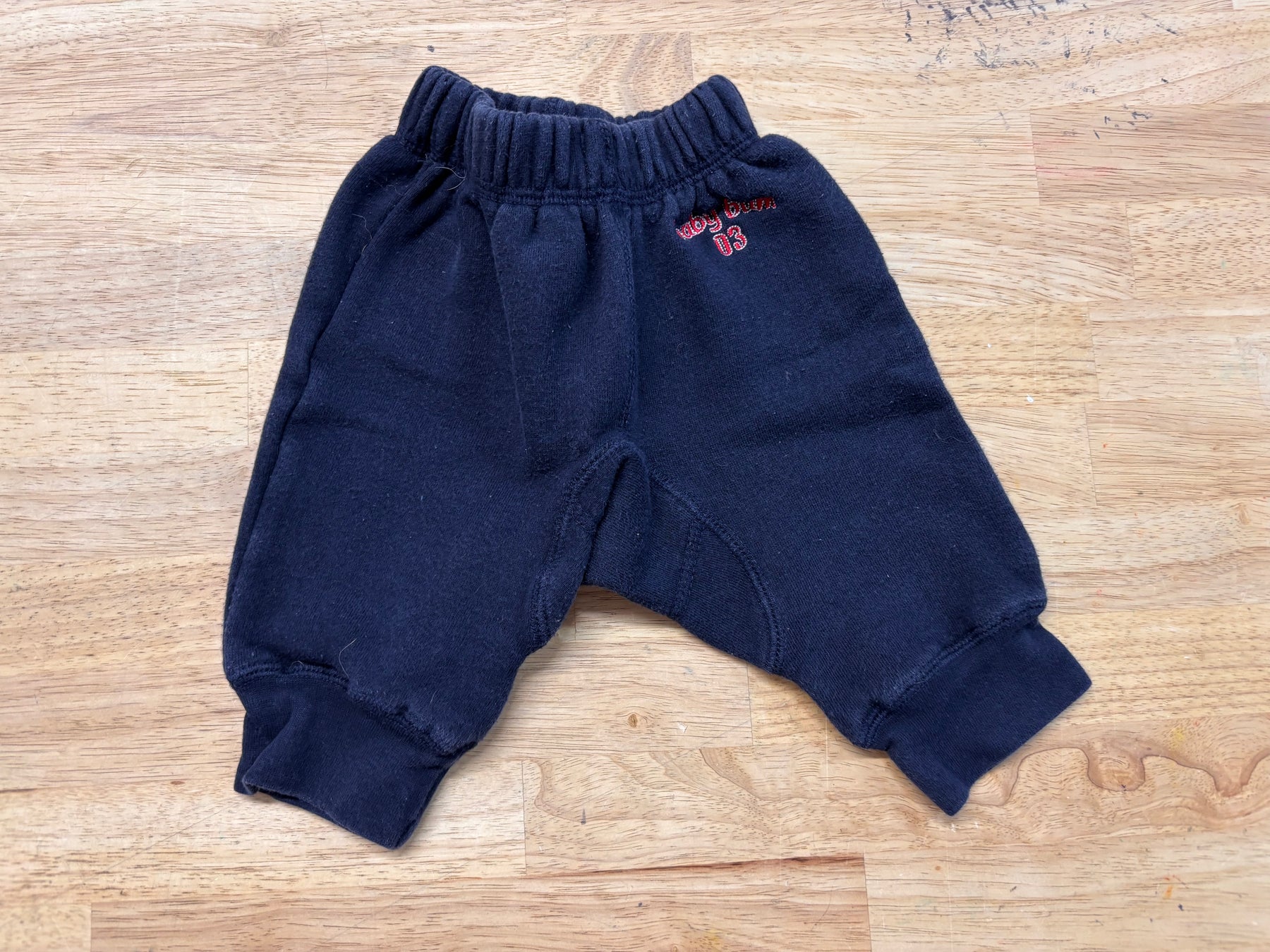 Harem-style oversized sweatpants in neutral tone. Moderate wash wear.