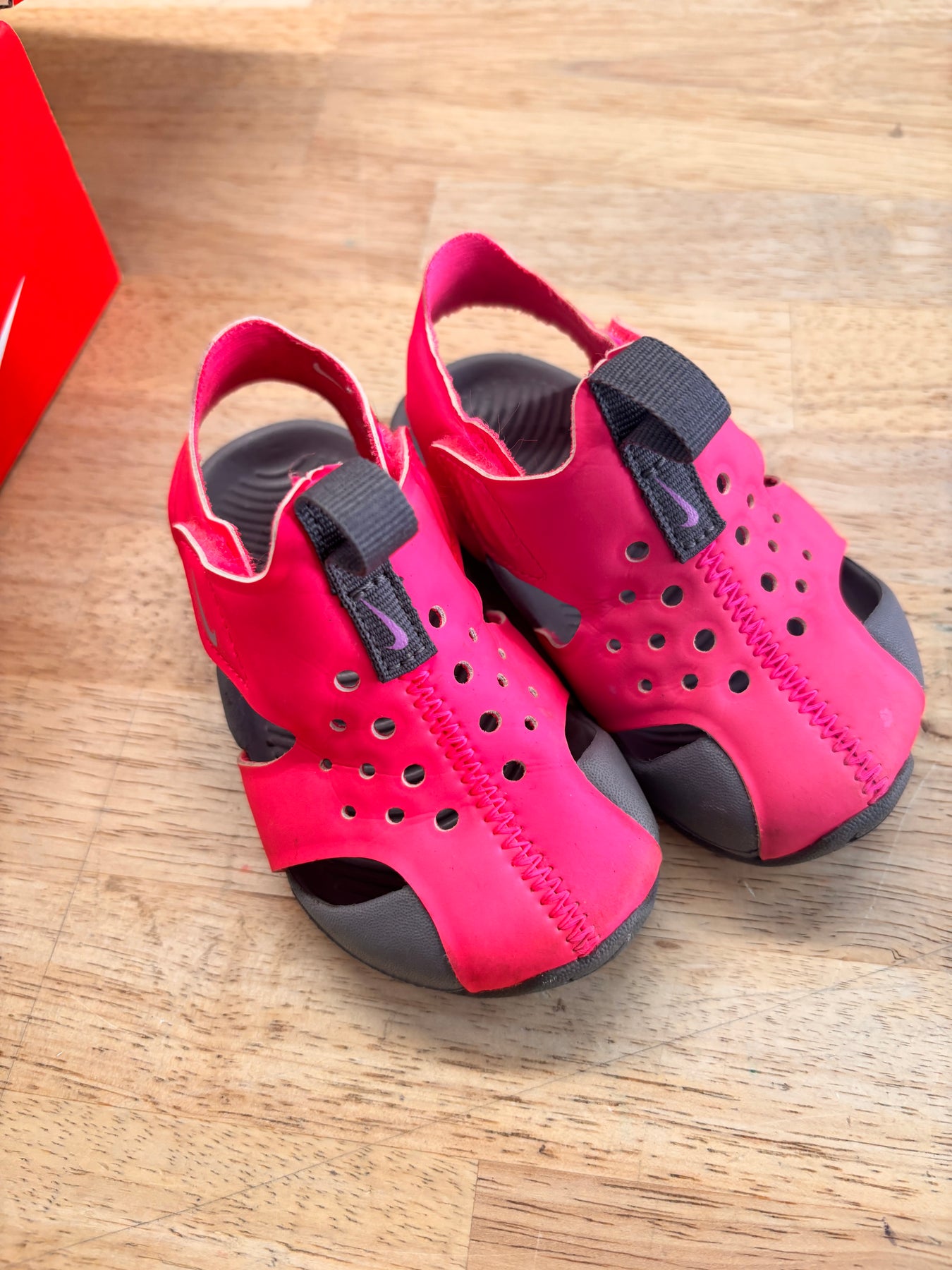Hyper pink Sunray Protect sandals. Size 5C. Fair used condition with dirt on soles.