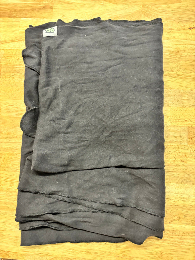 Stretchy wrap-style baby carrier made from 100% cotton. Black colour. Made in Canada. Good used condition.