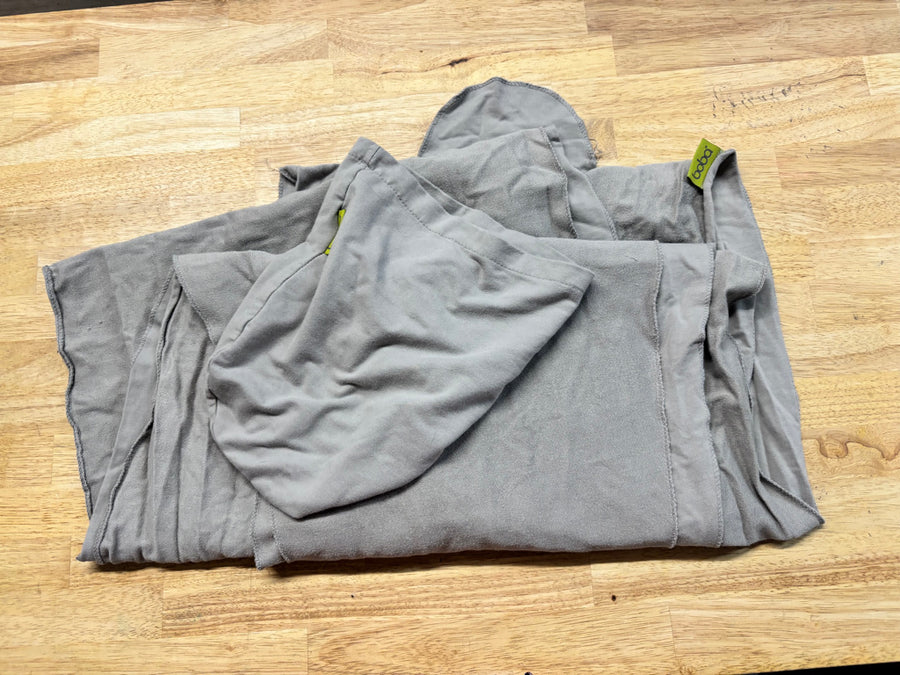 Diapers have been laundered using Tide. I don’t find they have a lingering scent of Tide. There are some diapers with stains and marks on them. This is from existing as a demonstration diaper. The slightly pink stains is from a fabric dye project I tried and then resulted in a lot of bleed over. Other marks I’m not sure of. I didn’t use the stash, but the stash did exist in work spaces and sometimes I sat a coffee cup down on an insert. I once had a pen explode in a box of diapers, and some diapers have residual ink stains on the material. These marks are small and have been marked.