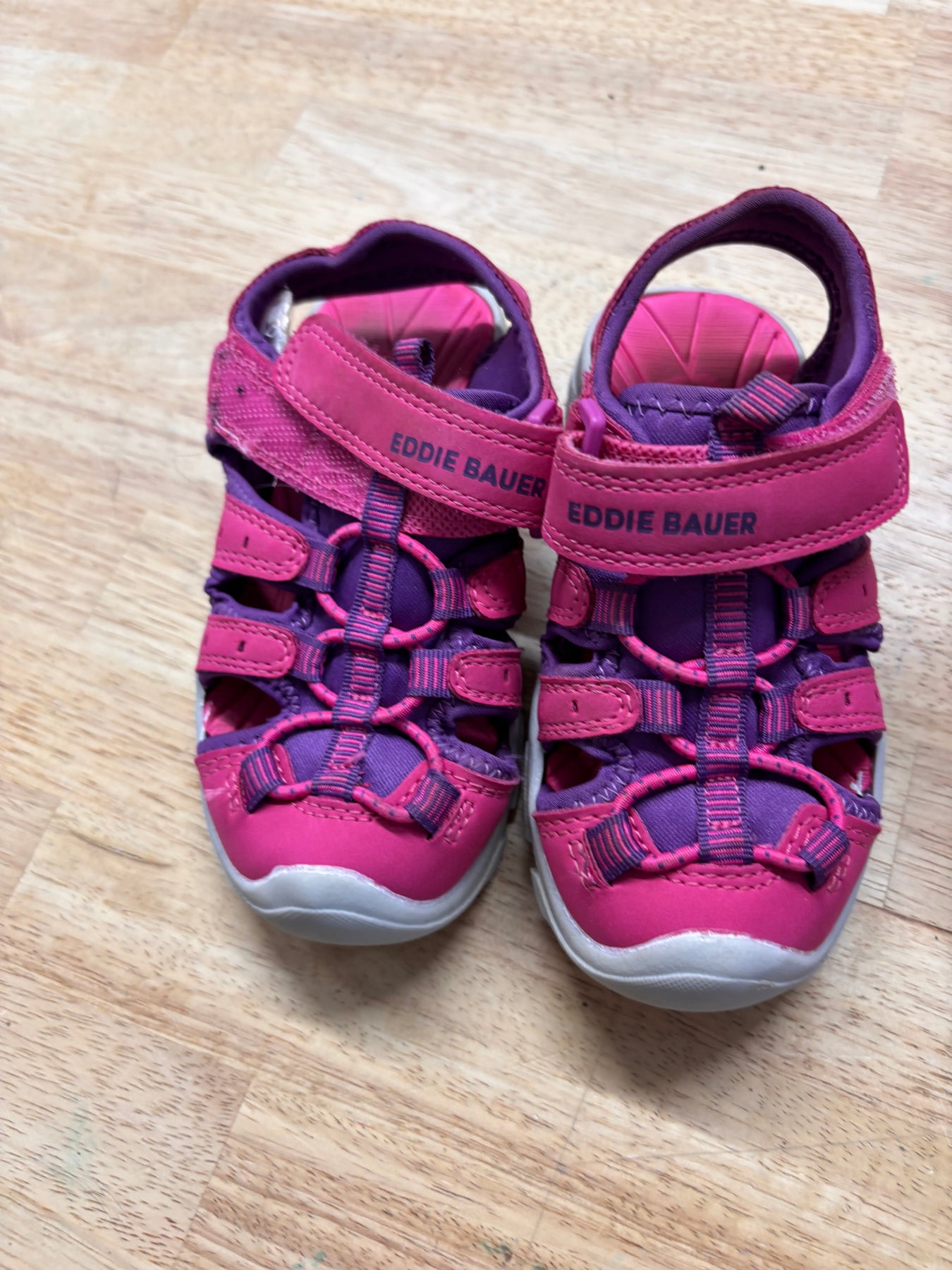 Pink/purple closed-toe sandals. Good used condition.