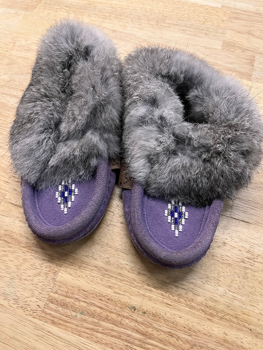 Laurentian Chief Fur-Lined Moccasins – Purple