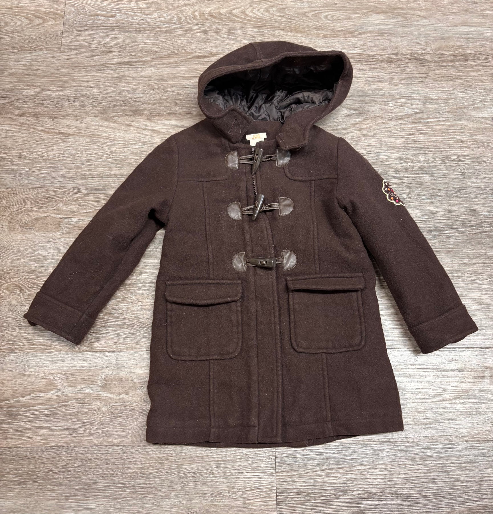 Joe brown peacoat with felted fleece exterior, hood, and toggle closures. Size 5. Good used condition.