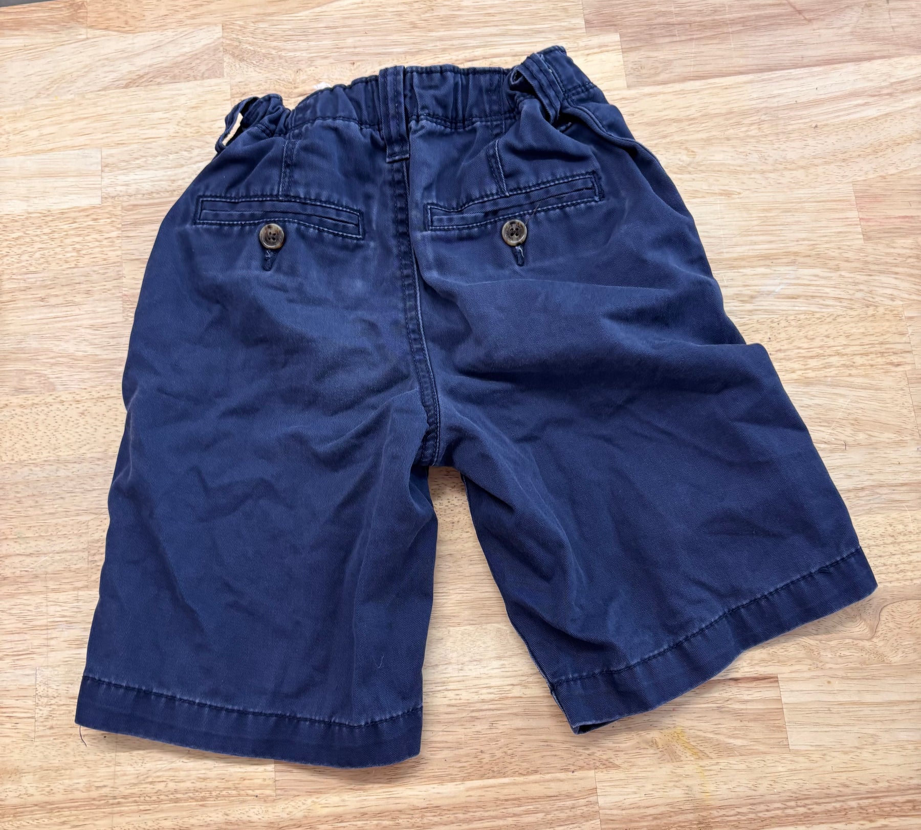 GAP Kids navy chino shorts with internal elastic waist adjusters. Light wash wear and fade.