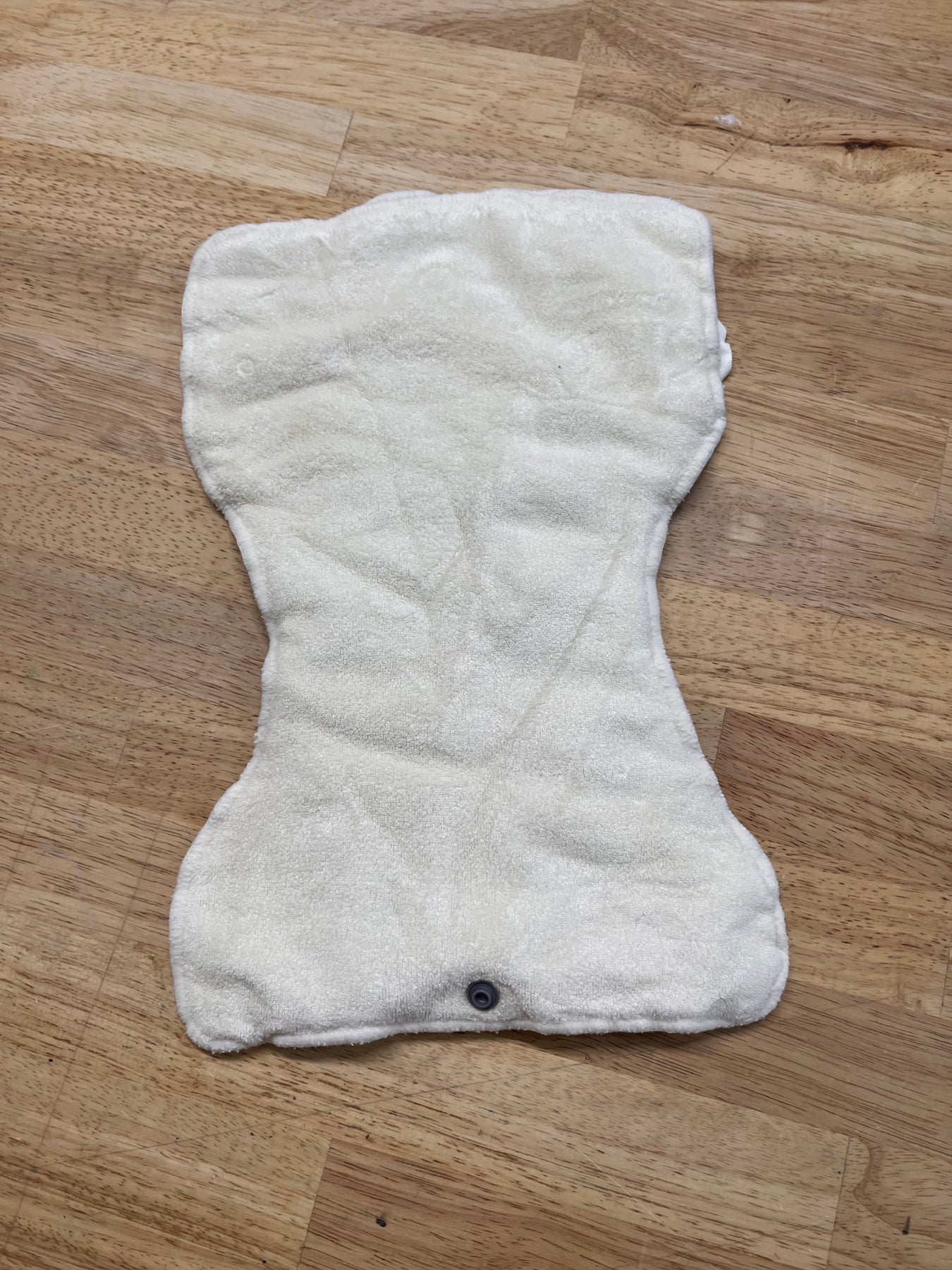 Glowbug One Size Contoured Bamboo Terry Insert Set. Large and small insert that snap together. Good used condition. Absorbent insert duo with ergonomic shape. Pairs well with pocket diapers or covers.