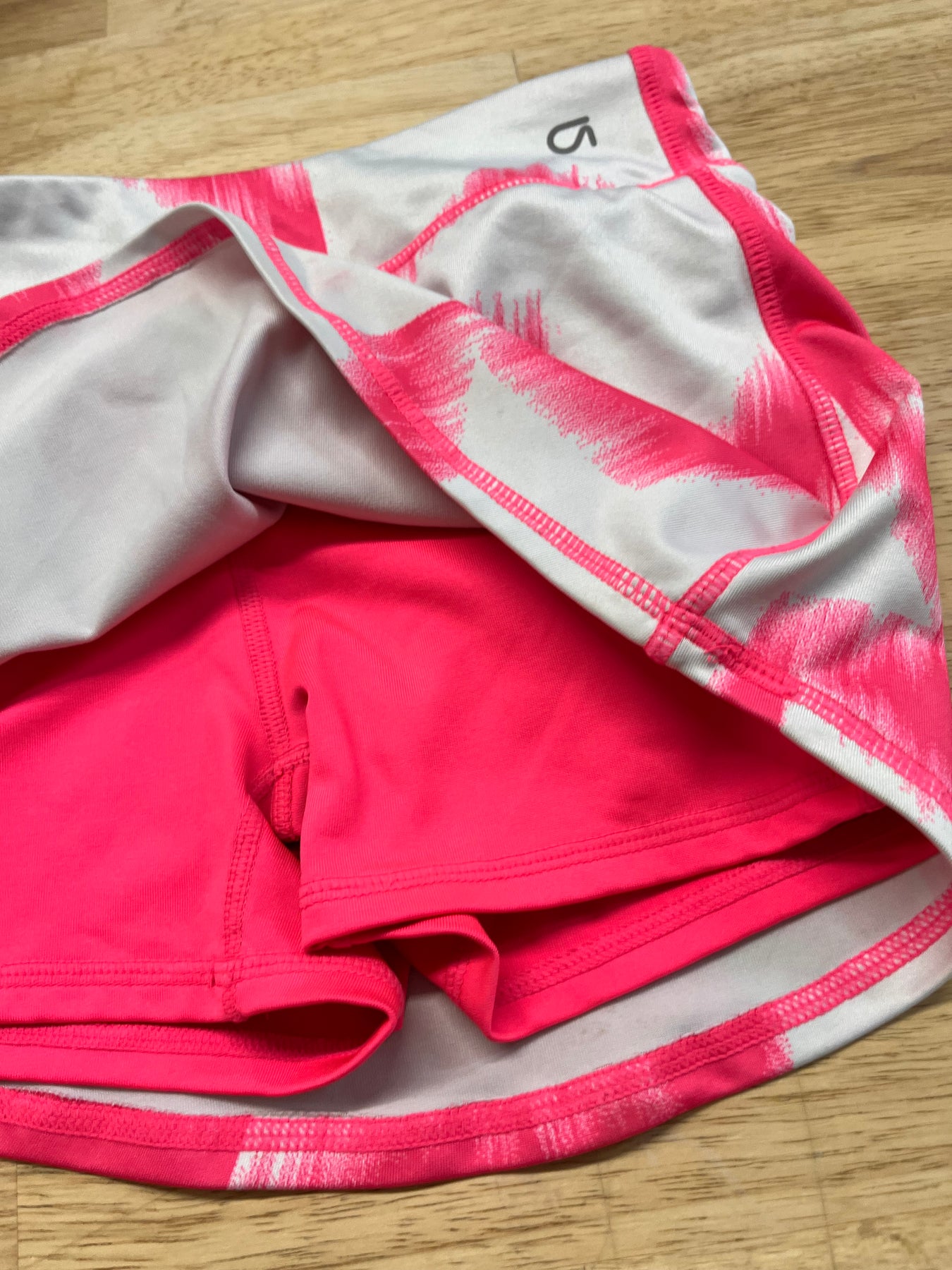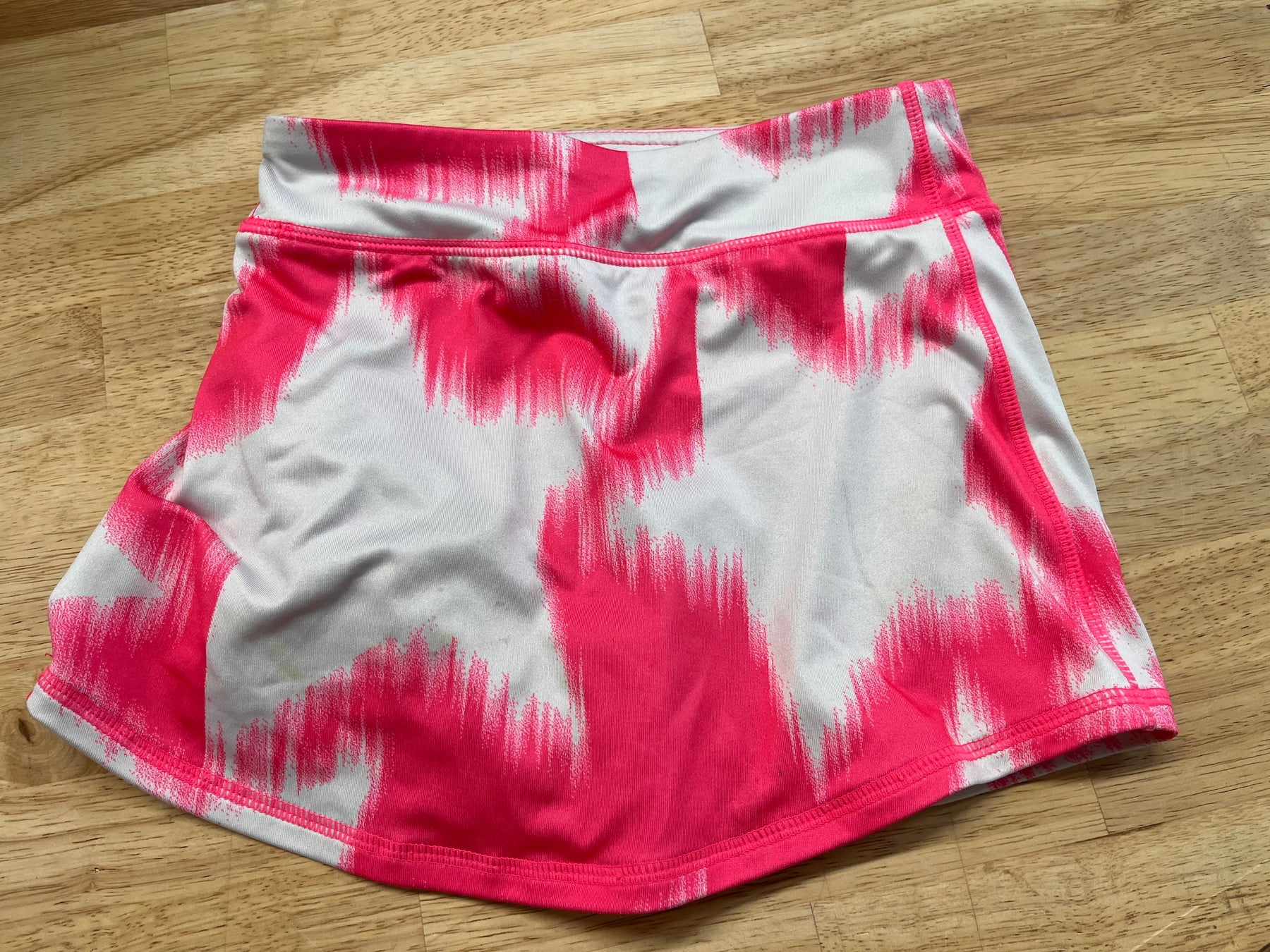 Pink skort with white stars; hot pink shorts underneath; good used condition.