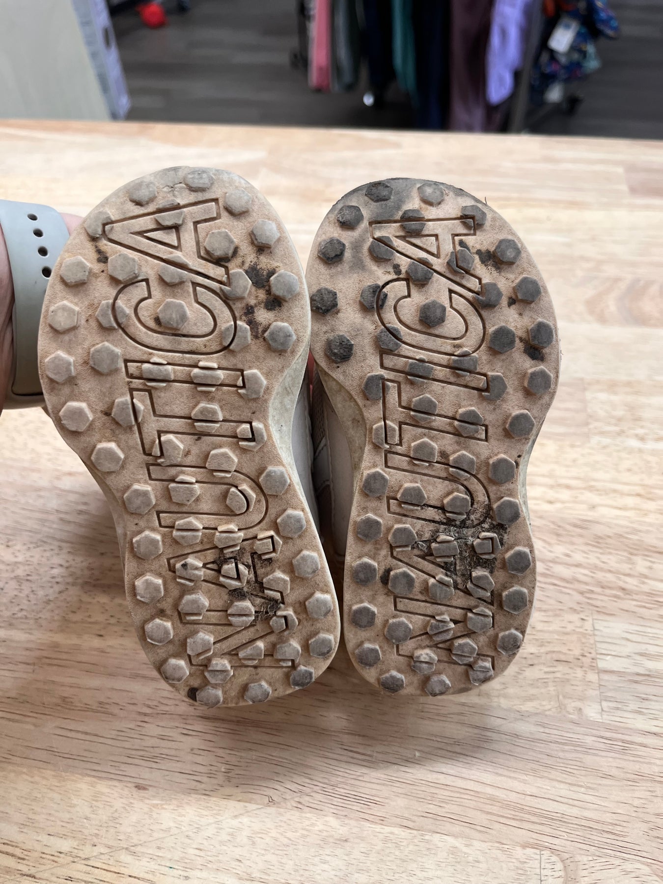 Nautica sneakers, cream and light pink with velcro, size 6, lightly dirty, in good used condition.