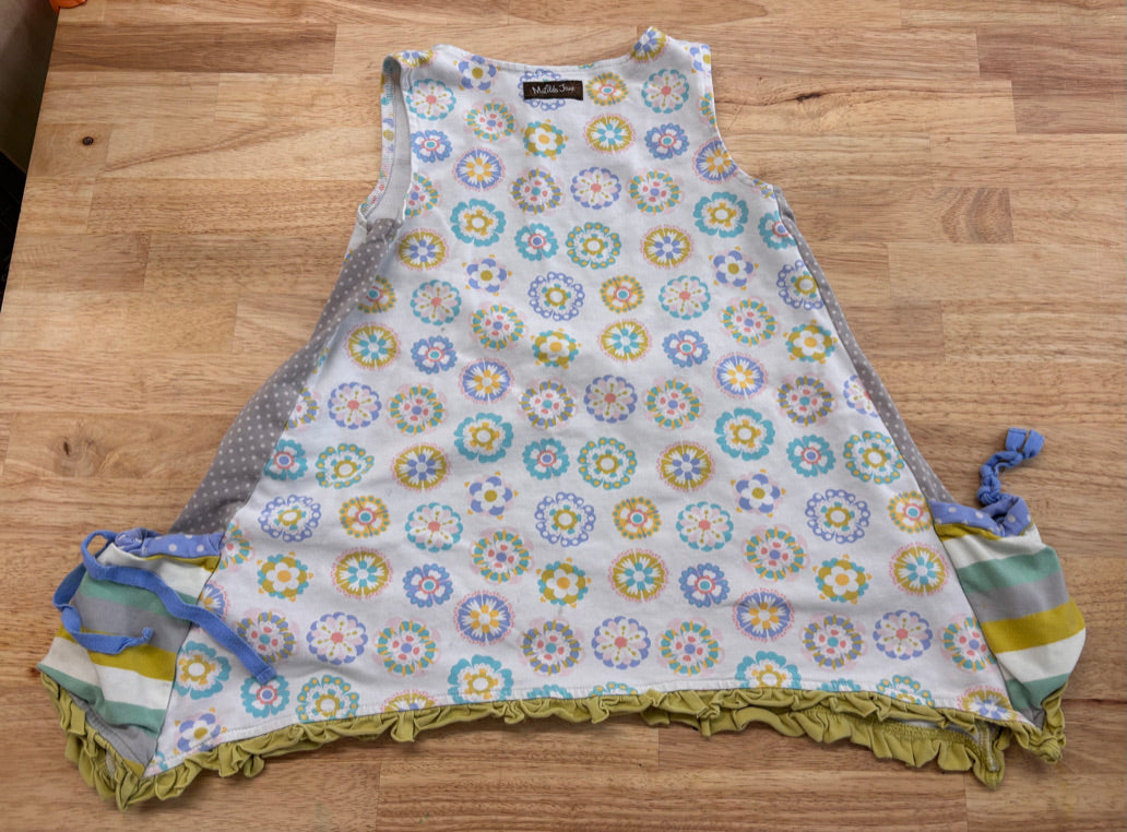 Fair condition, light discoloration, not as bright white as originally. Pinwheel trapeze asymmetrical top.