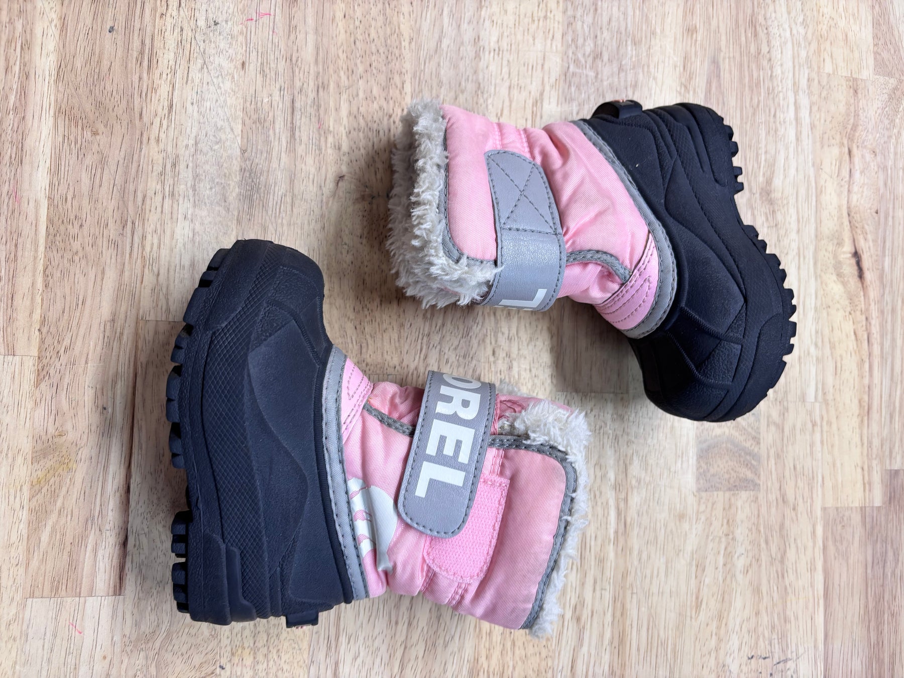 Pink Sorel winter boots in great used condition with minimal wear. Name stamped inside. Warm and durable.