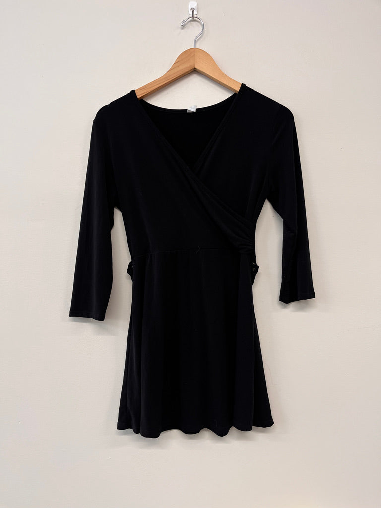Polyester crossover nursing maternity top with tie detail, includes short sleeve fit. Good used condition.