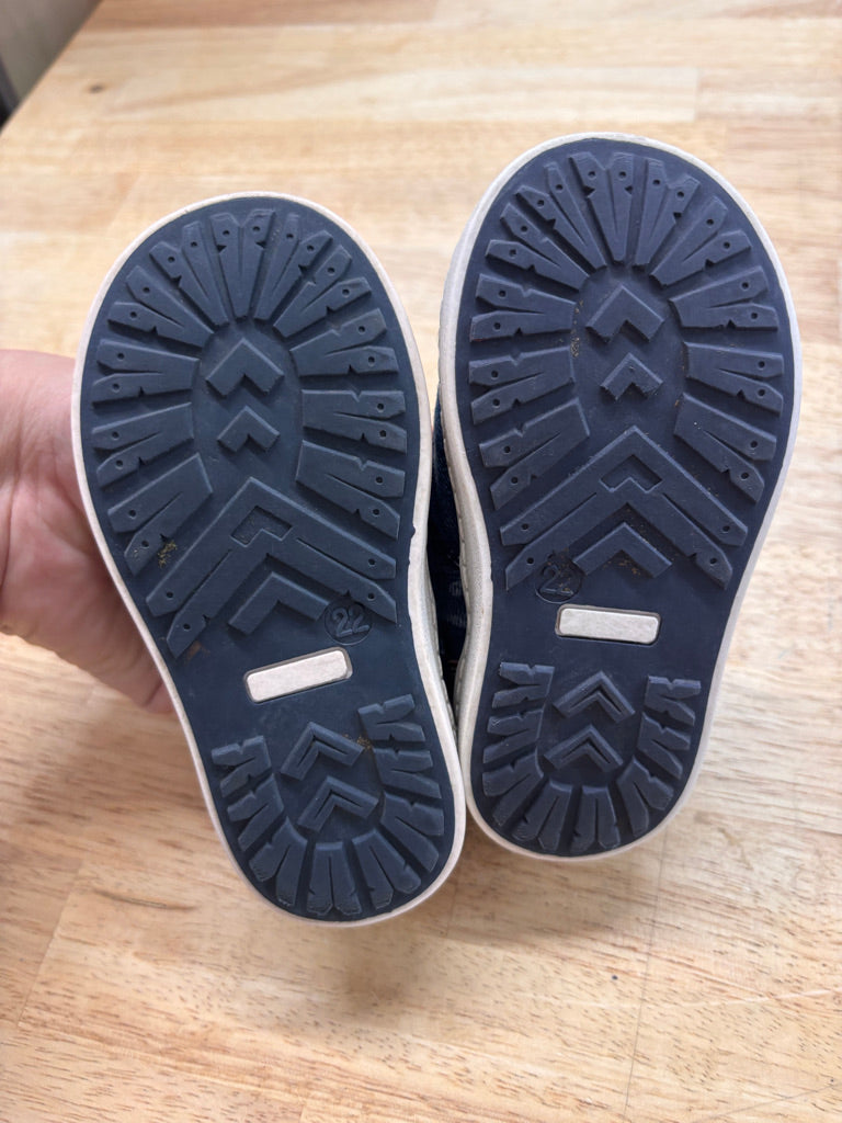 Sneakers in canvas faux denim style with rubber soles. Size EU 22. Good used condition.