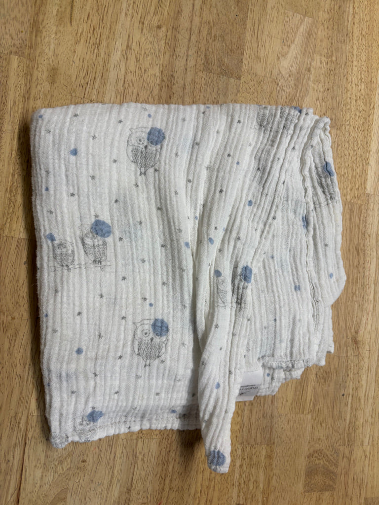aden + anais Owl Print Muslin Blanket Cream