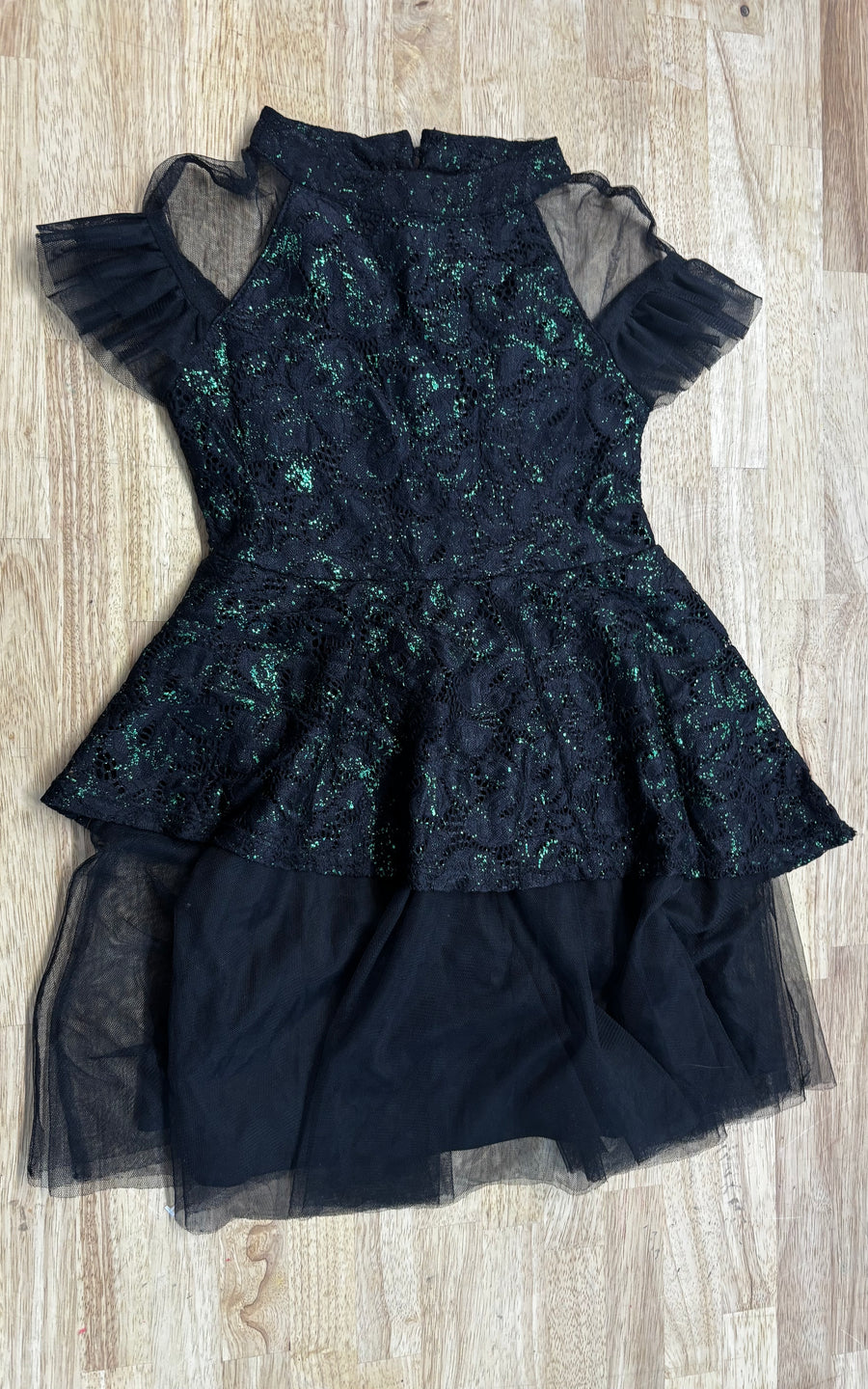 Wicked Black Sparkle Lace Overlay Dress Mesh Sleeves | Size 8