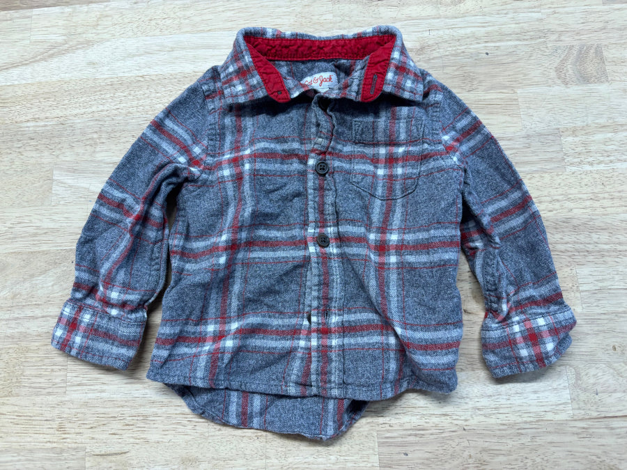 Cat & Jack Grey Red Plaid Flannel Button Shirt | Size 18M