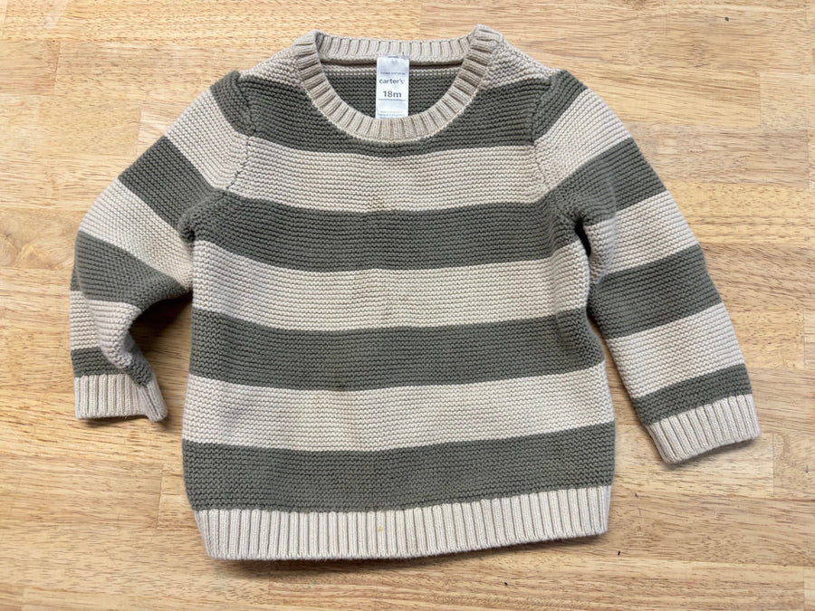 Carter’s Green Cream Striped Knit Sweater | Size 18M