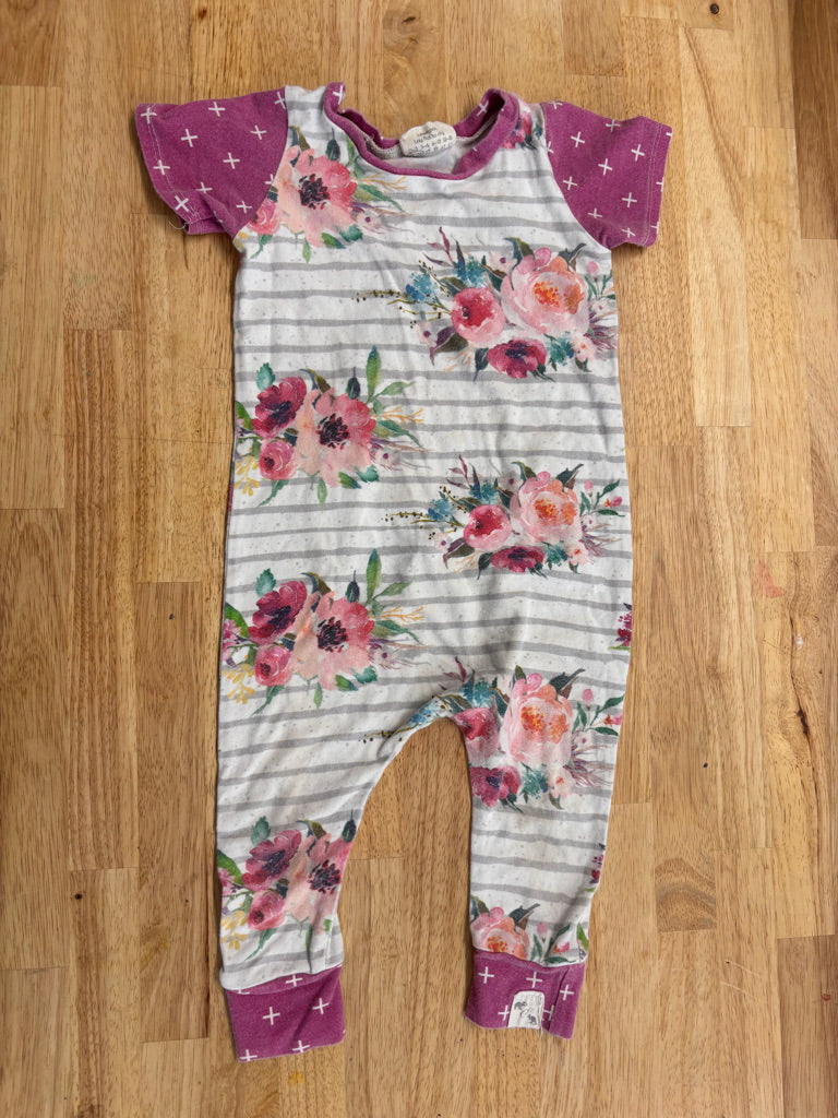 Bear & Roo 18–24M Handmade Romper – Floral Stripes