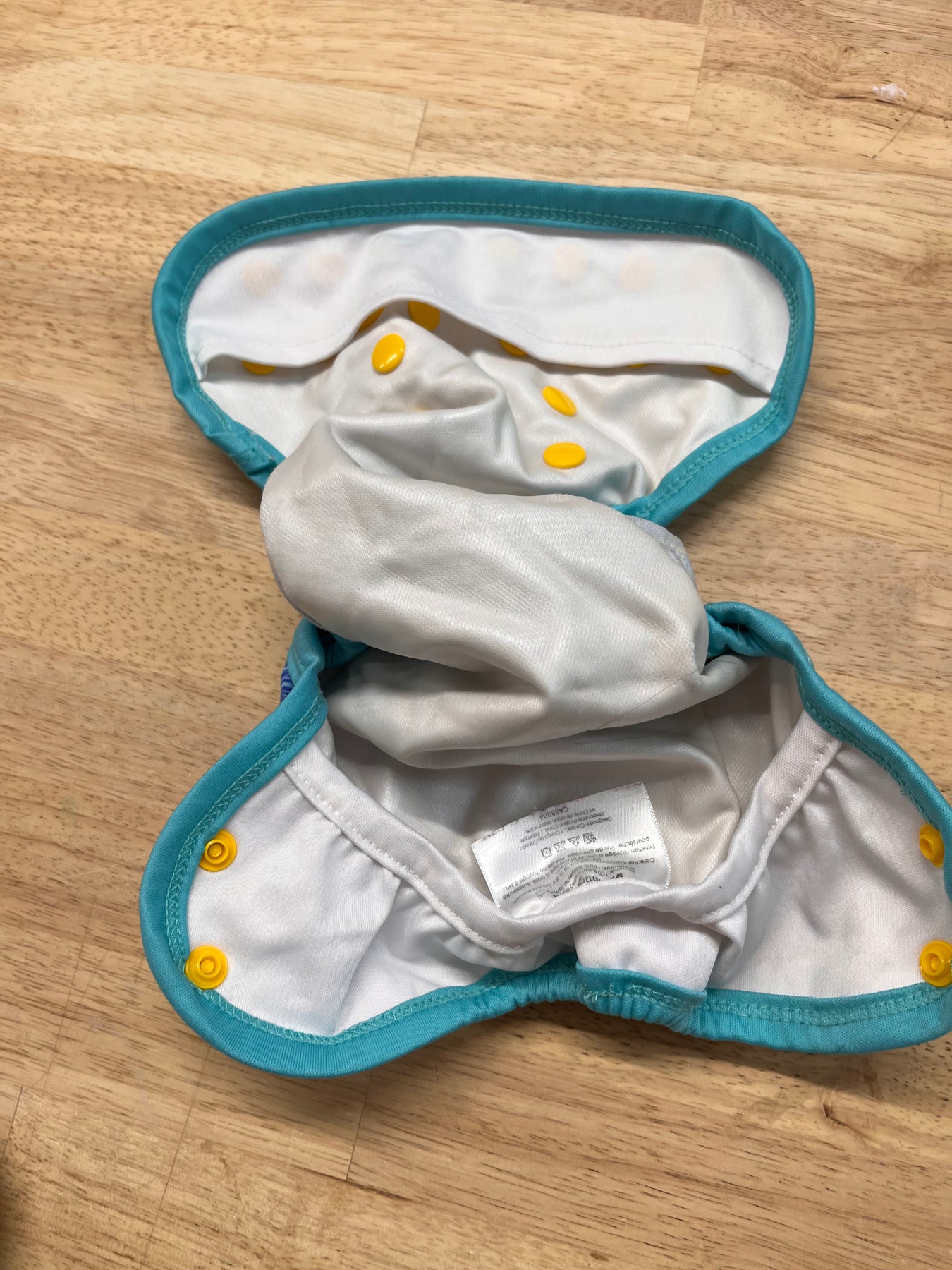 Nuggles Size 1 Size 1 Cloth Diaper Cover. Double gusset, good used condition. Best for fitted diapers or inserts. Waterproof outer layer. Requires absorbent insert or fitted diaper underneath. Snap-in compatible.