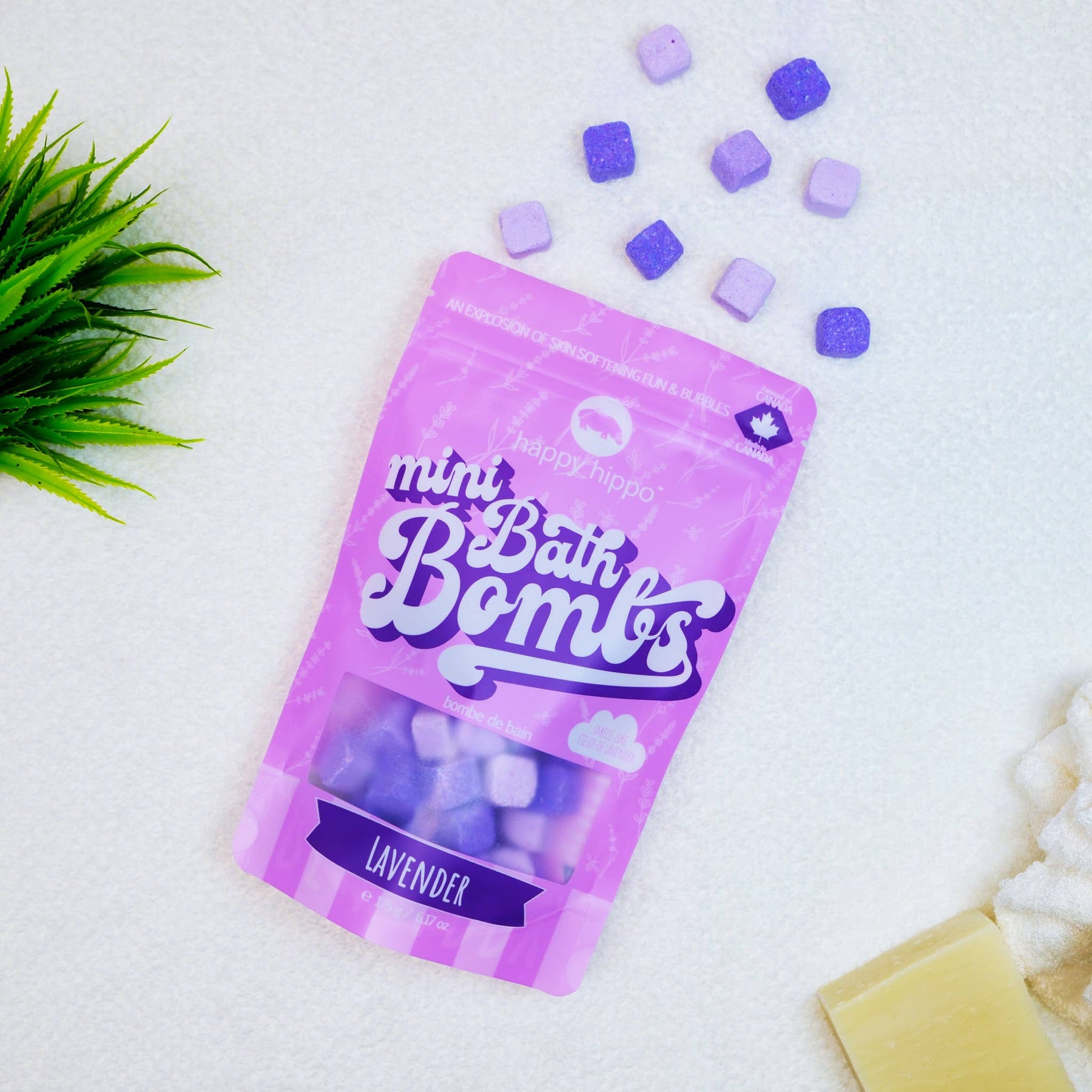 Smells Like: Fields of lavender Size: 175g of Tiny Bath-Time Magic Warning: Extreme fun ahead! Toss in a few (or go all out and add a bunch!) and watch these mini bubble bombs fizz and pop with bright colors and tiny bubbles. They smell amazing and leave your skin feeling soft and happy. Take the fun out of the tub, too — drop them in a water table to make magical potions and experiment with mixing colors.