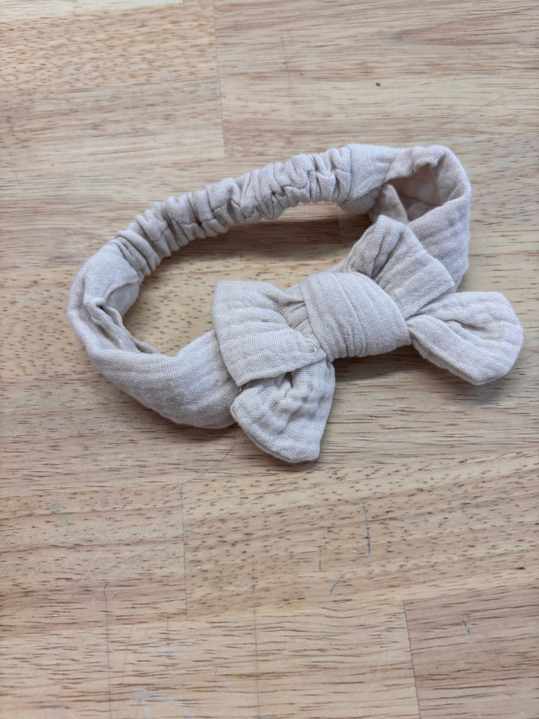 Cream and light brown muslin, tied knot. Good used condition.