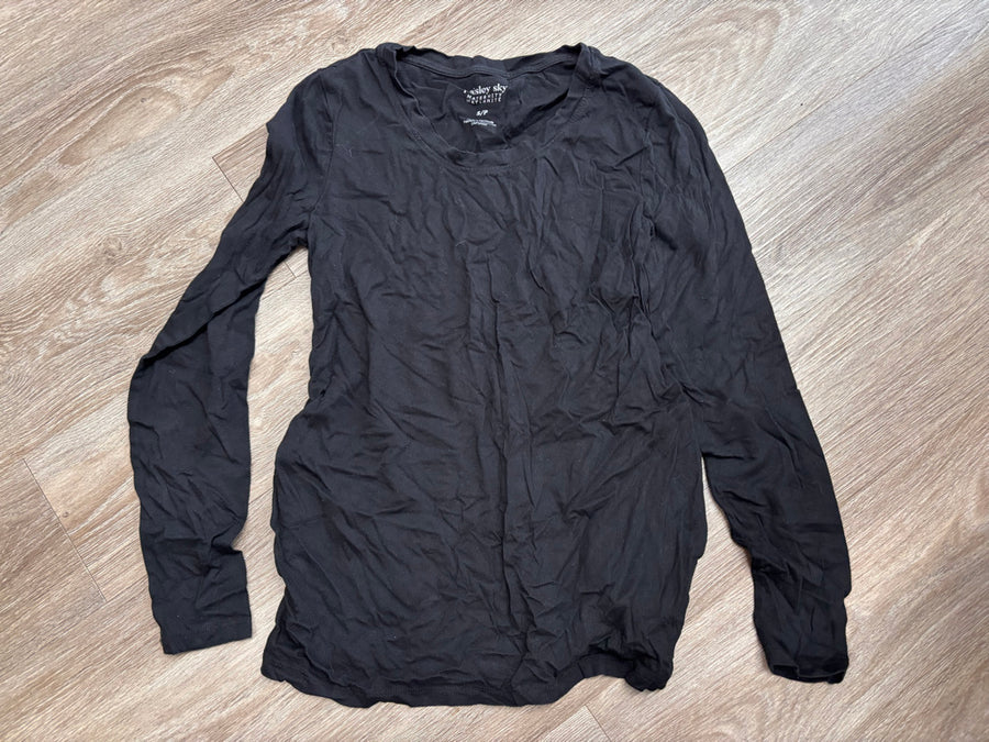 Paisley Sky Maternity Top – Size S (Black, Scoop Neck)