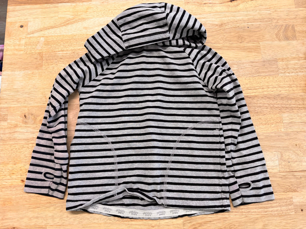 Grey and black striped hooded shirt. Size 3 years. Good used condition.