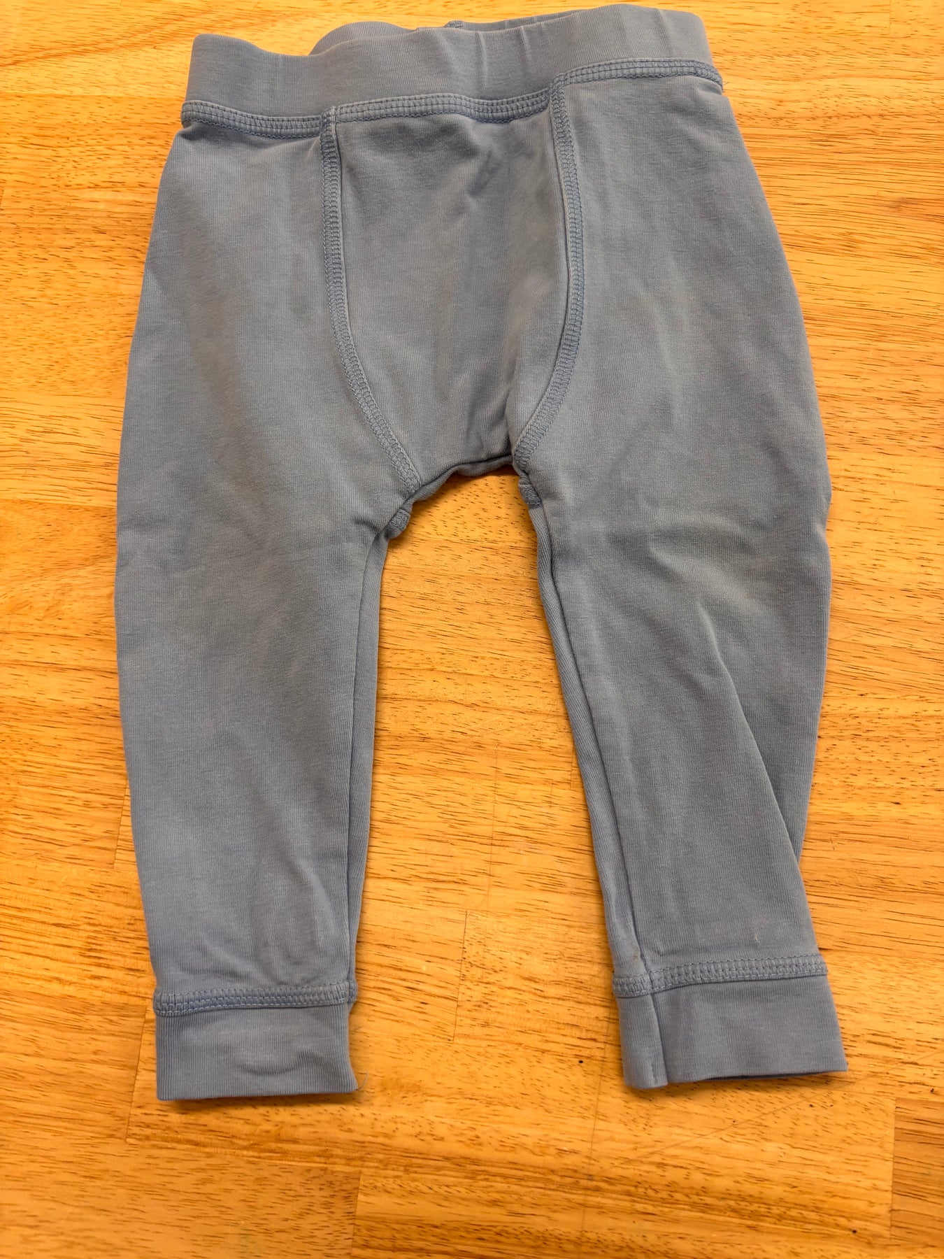 Peekaboo Beans light blue harem-fit leggings. Size 6–12 months. Good used condition.