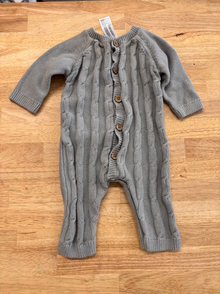 Anko Cable Knit Button Romper – Grey (0–3 Months)