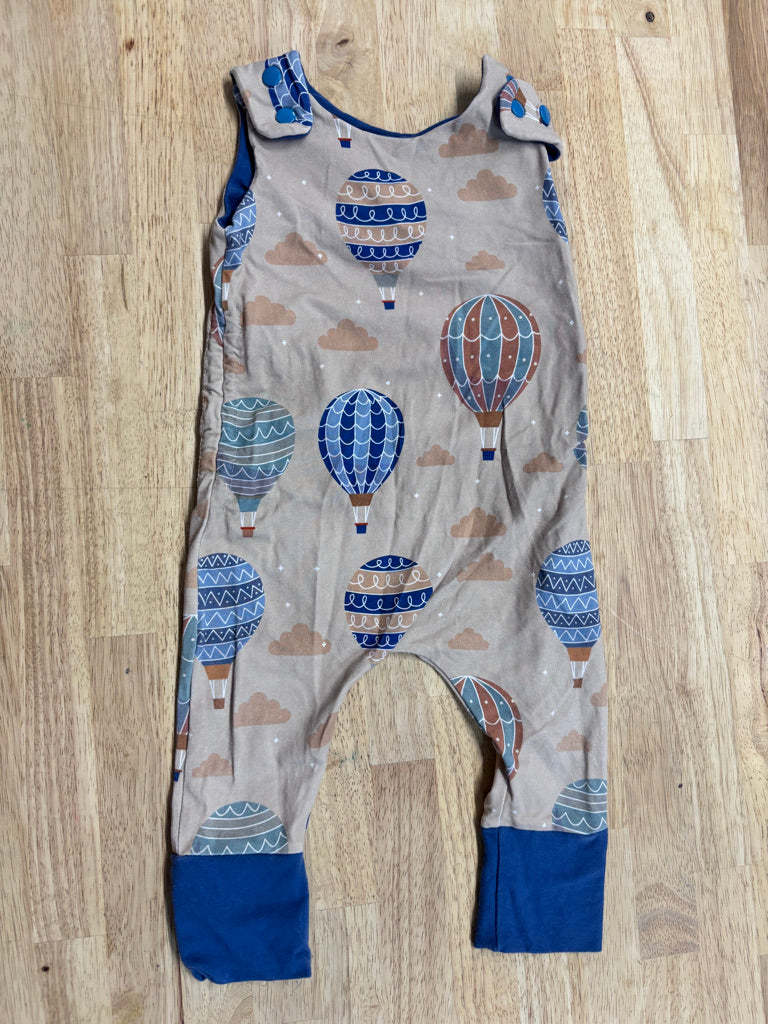 Cotton spandex blend grow-with-me romper. Small hole at top seam, repaired. Fair used condition. hole in seam in back