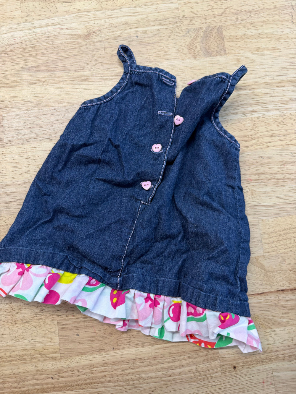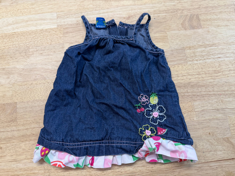 Please Mum Denim Dress Embroidered Fruit Floral | Size 3–6M