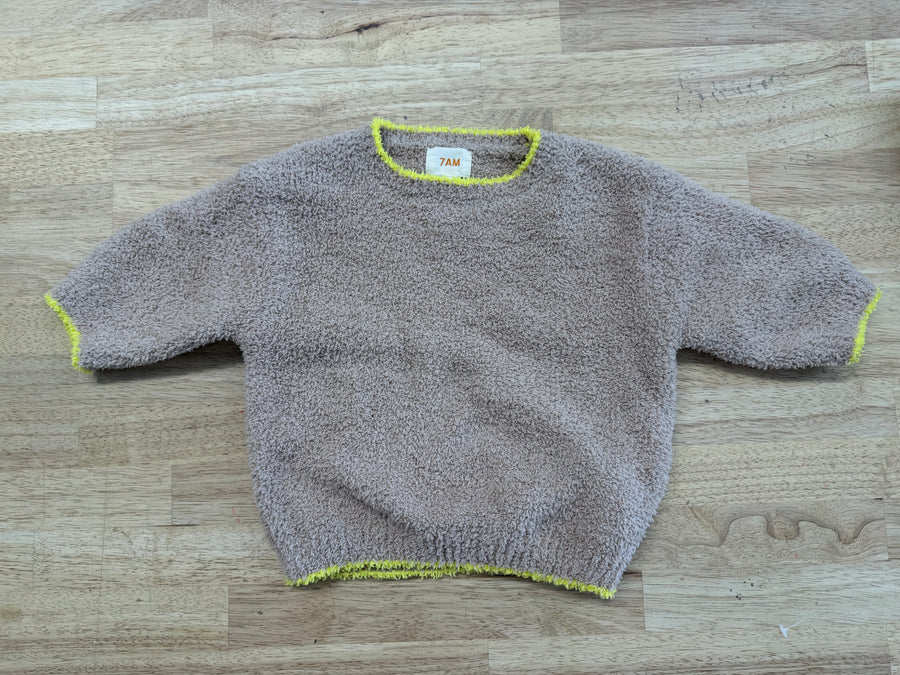 7AM Knit Sweater – 3–6M | Teddy Bear Style Yellow Trim
