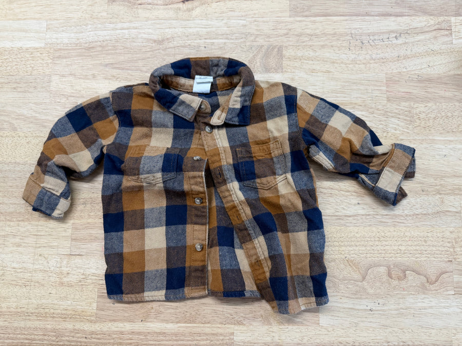 H&M Flannel Shirt – 4–6M | Brown and Navy Button-Up