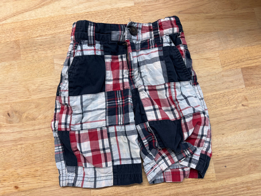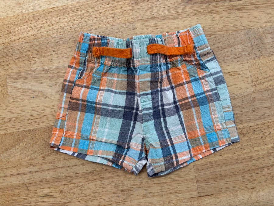 George Shorts – Size 0–3M (Plaid Blue/Orange)