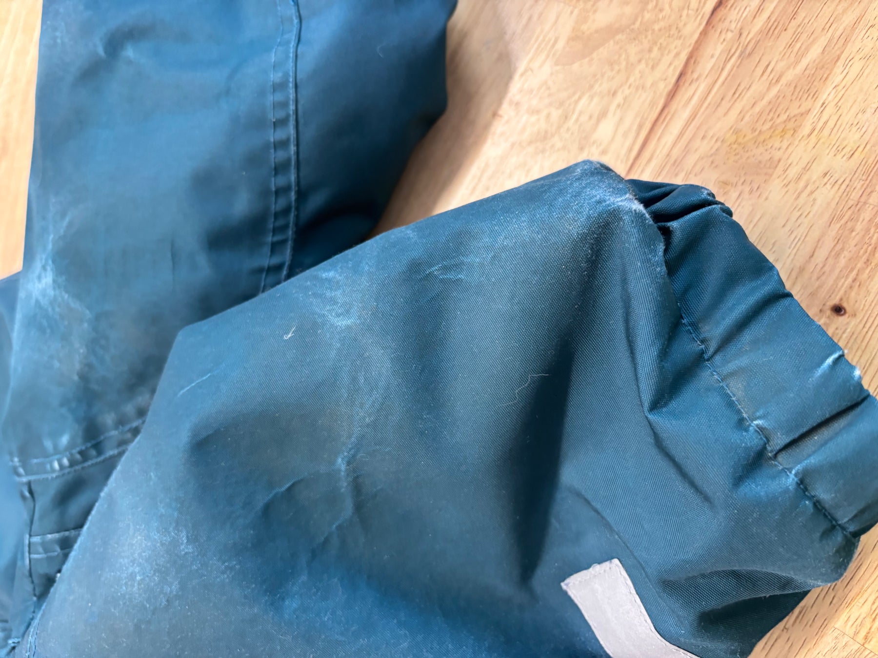 Scandinavian-quality warm snowsuit in a teal colour. Fair wear across textiles but overall good used condition with lots of life left. Originally $160 new.