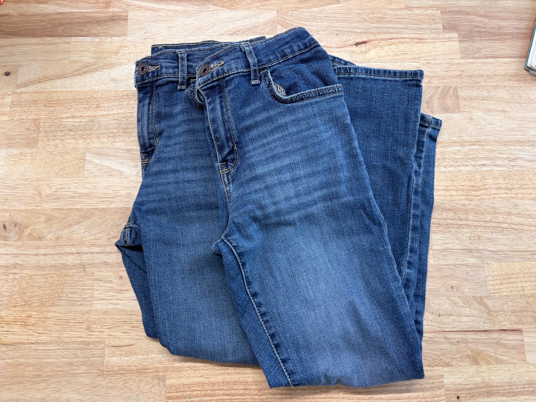 Medium wash jeans, husky fit with adjustable waist. Two available. Size 10. Good used condition.