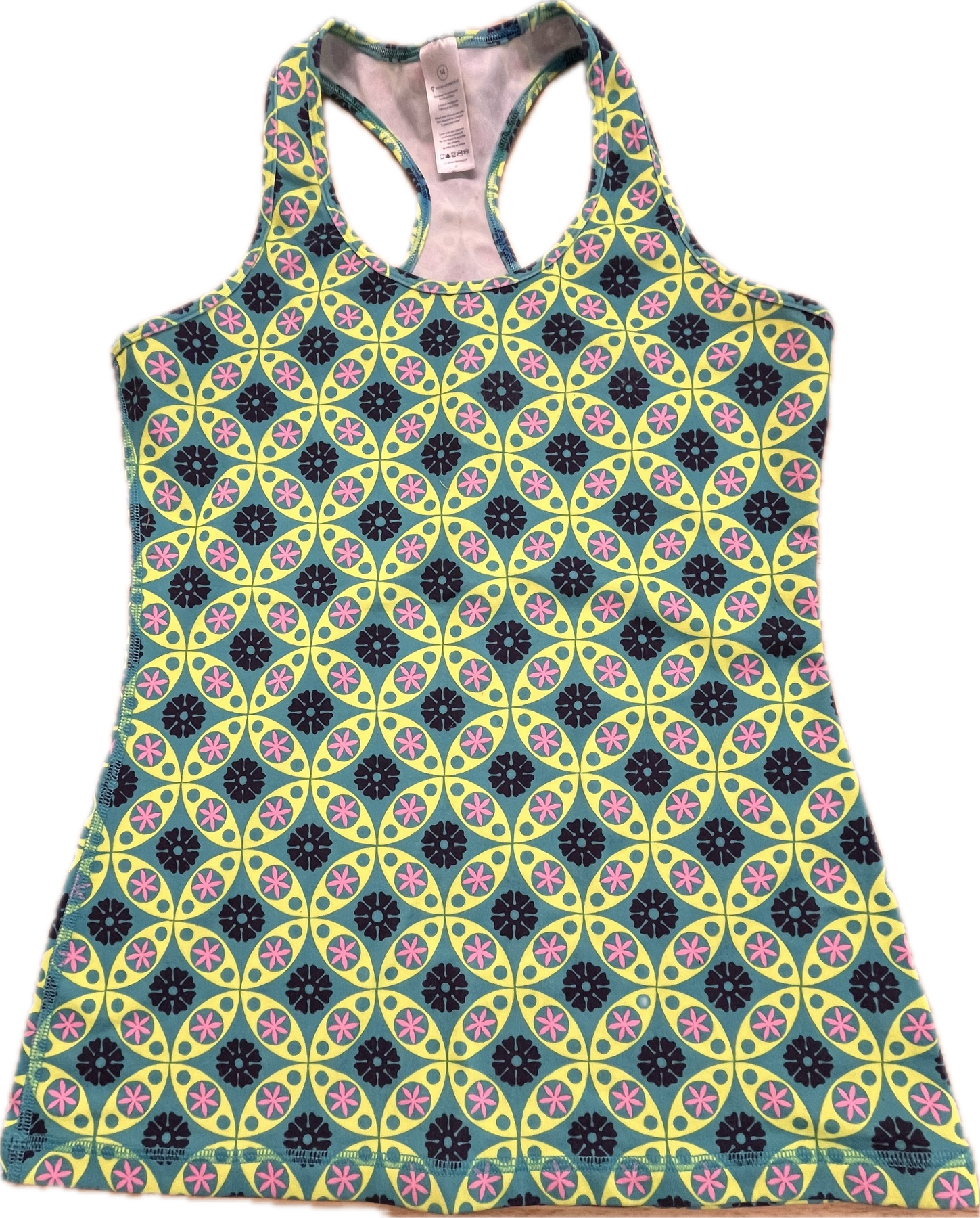Ivivva racerback tank top with green geometric print, size 14. Great condition.