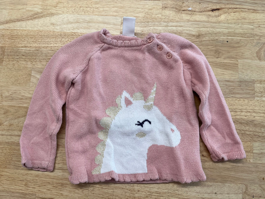 Joe Fresh 18-24M Pink Unicorn Knit Sweater