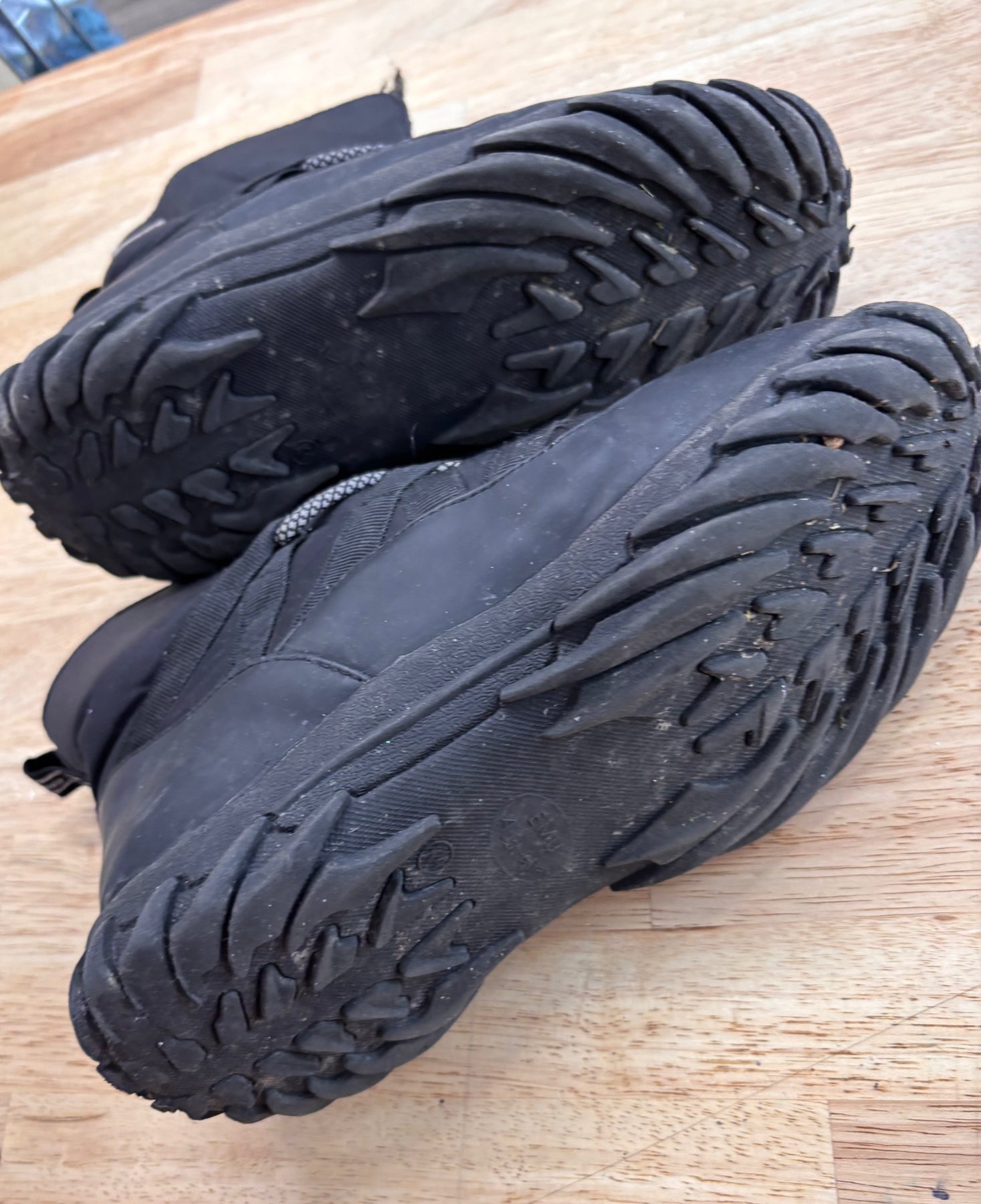 EMU Australia wool-lined ankle boots in black, size 4. Fair condition with minimal use, wear on toe area.