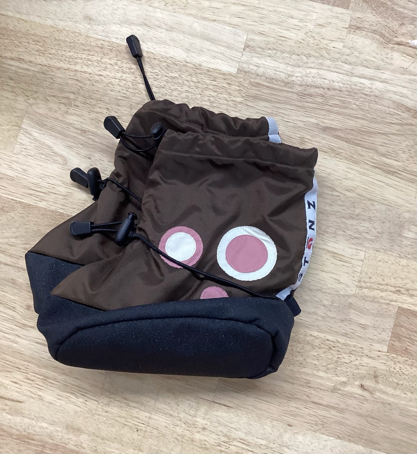 STONZ extra large booties in brown with pink polka dots. Lightly lined. Great used condition.