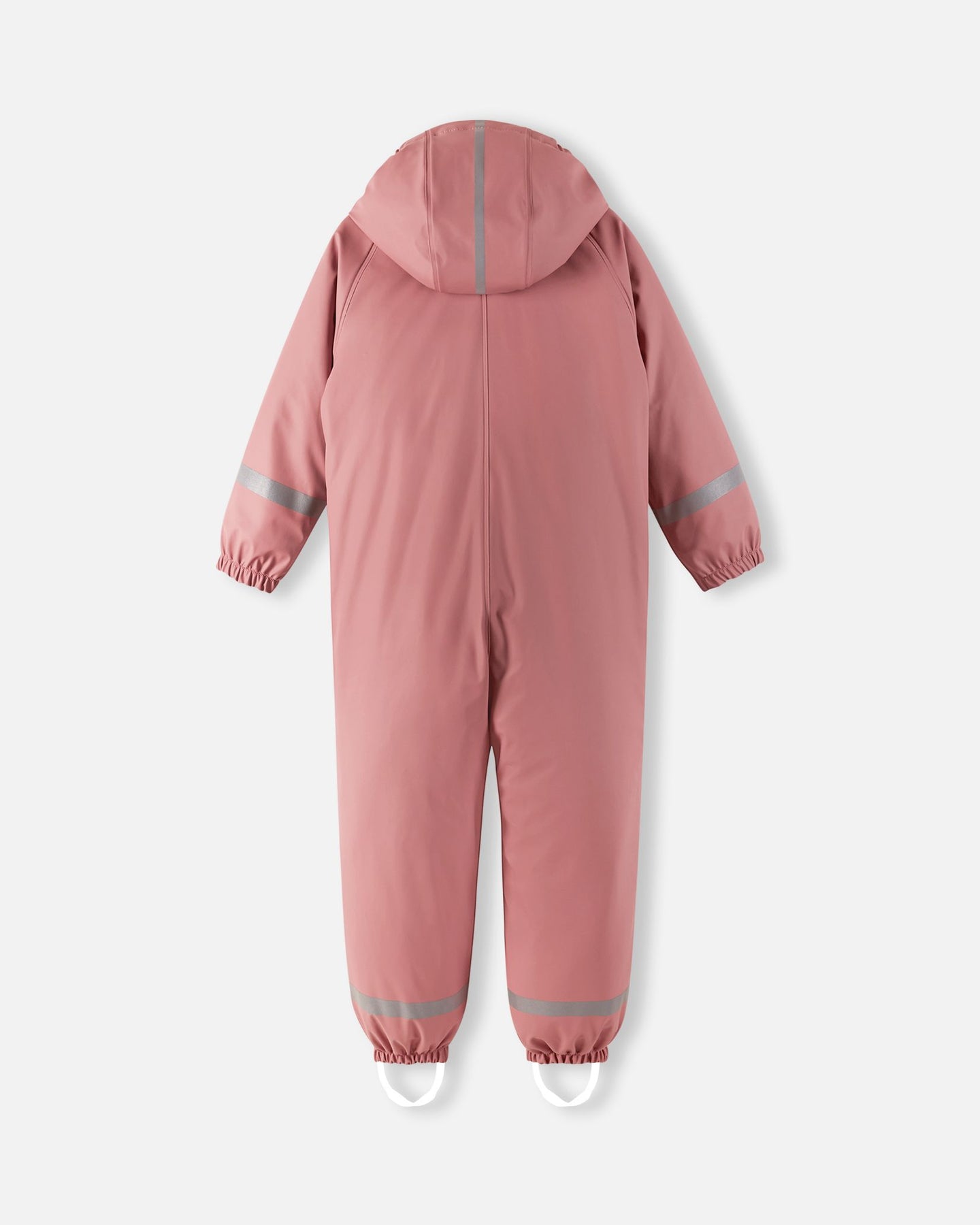 Let your little adventurer embrace cold rainy days with the kids' rain jumpsuit Rapakko. This all-in-one suit keeps them dry and comfortable with its fully waterproof material and welded seams. The light insulation ensures they stay warm without overheating, while the safe, detachable hood and elastic cuffs add an extra layer of protection. Getting dressed is a breeze with the convenient front zipper and elastic leg ends, and playtime is worry-free with detachable foot loops. Plus, the reflective details make your child more visible during low-light explorations. Perfect for puddle-jumping and outdoor play, Reima Rapakko is the ultimate companion for your child's rainy day adventures.