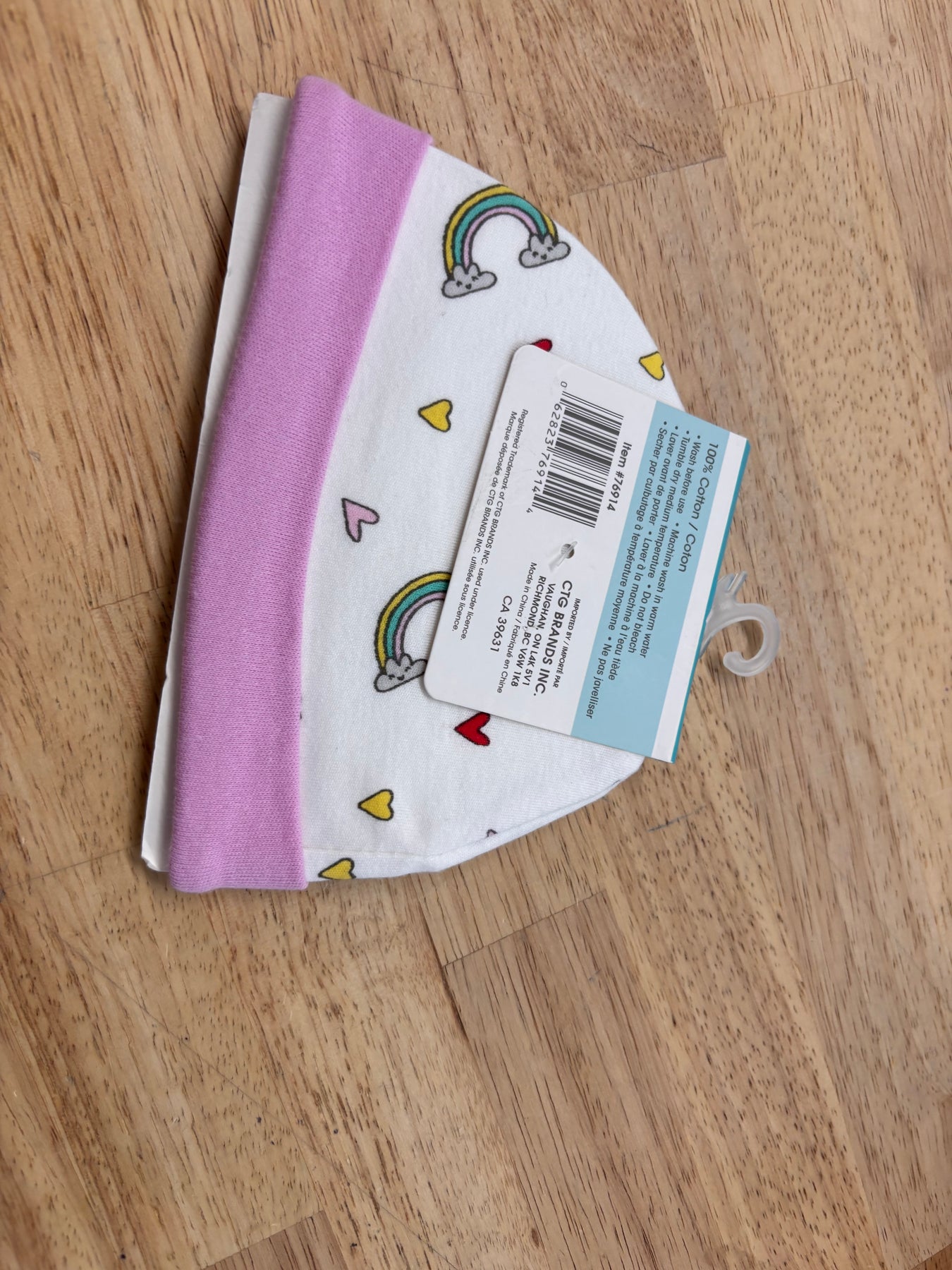 Tootsie Baby newborn/baby hat and mittens set, light pink and purple with rainbow print. New in package.