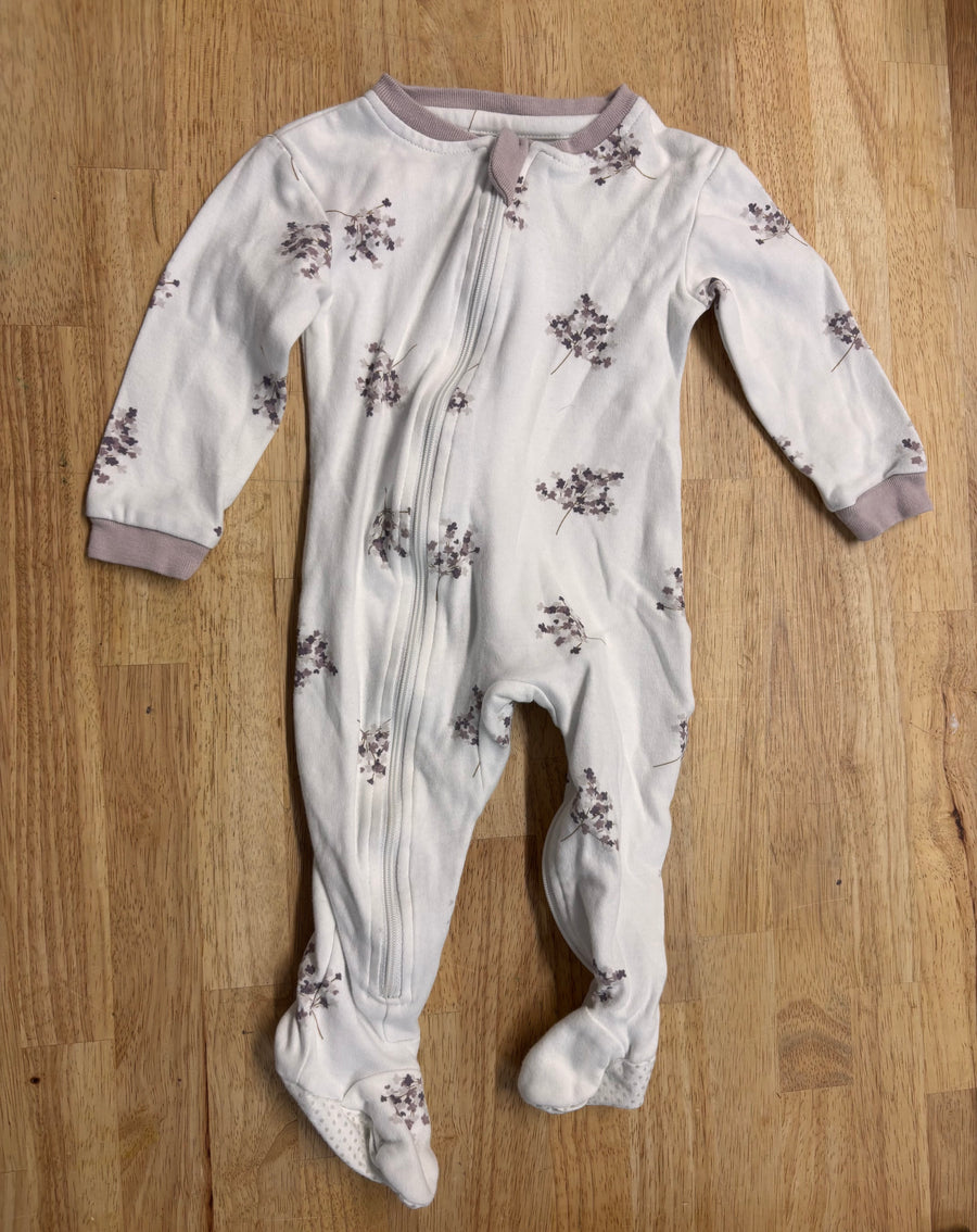 Zippyjamz Sleeper – White/Purple Floral – 6-9M