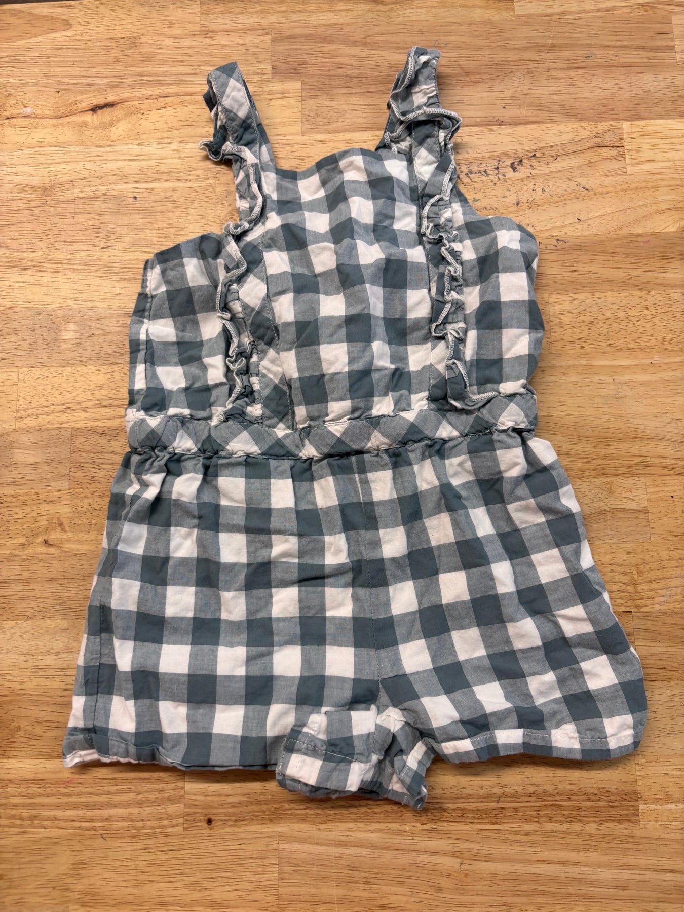 Blue plaid romper. Good used condition with light wear.